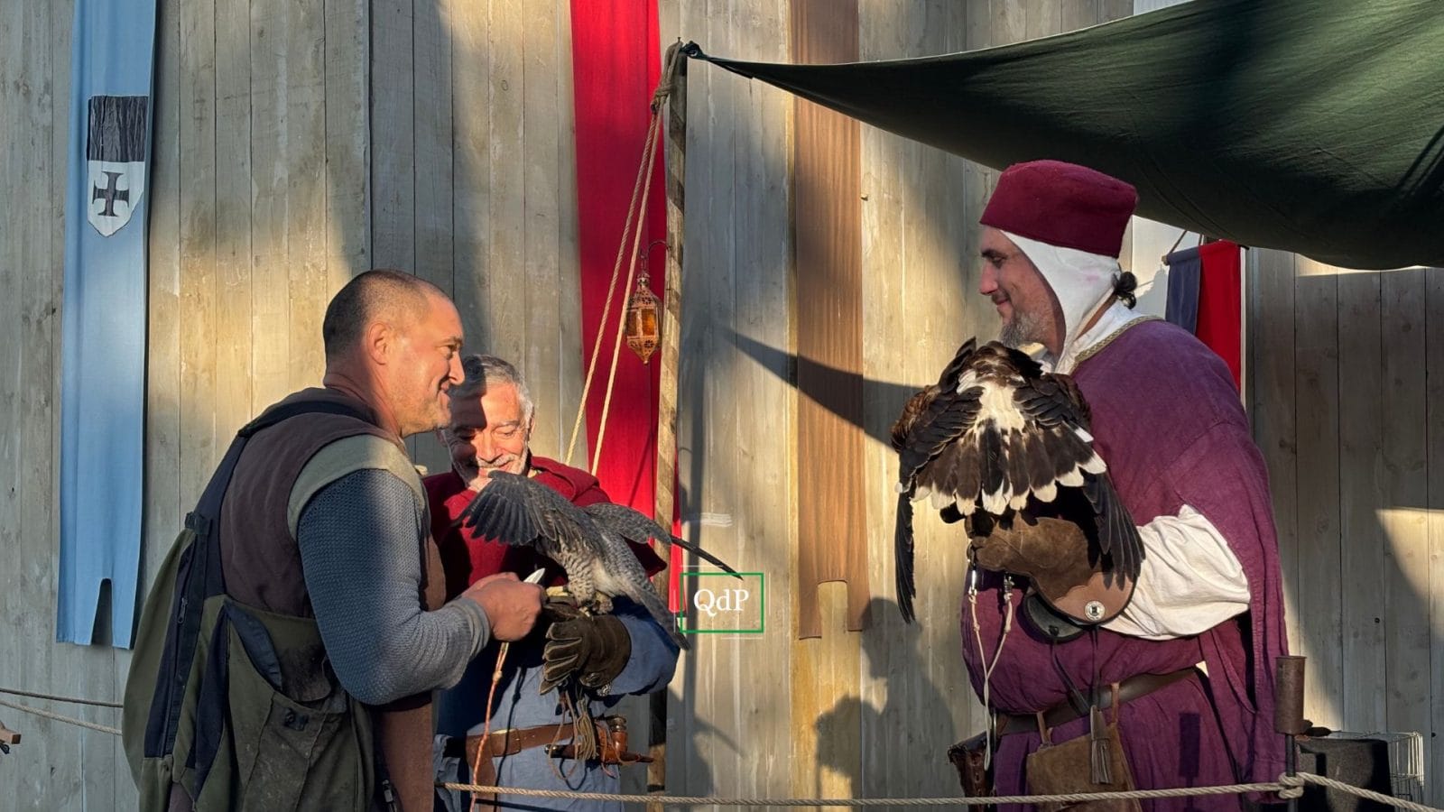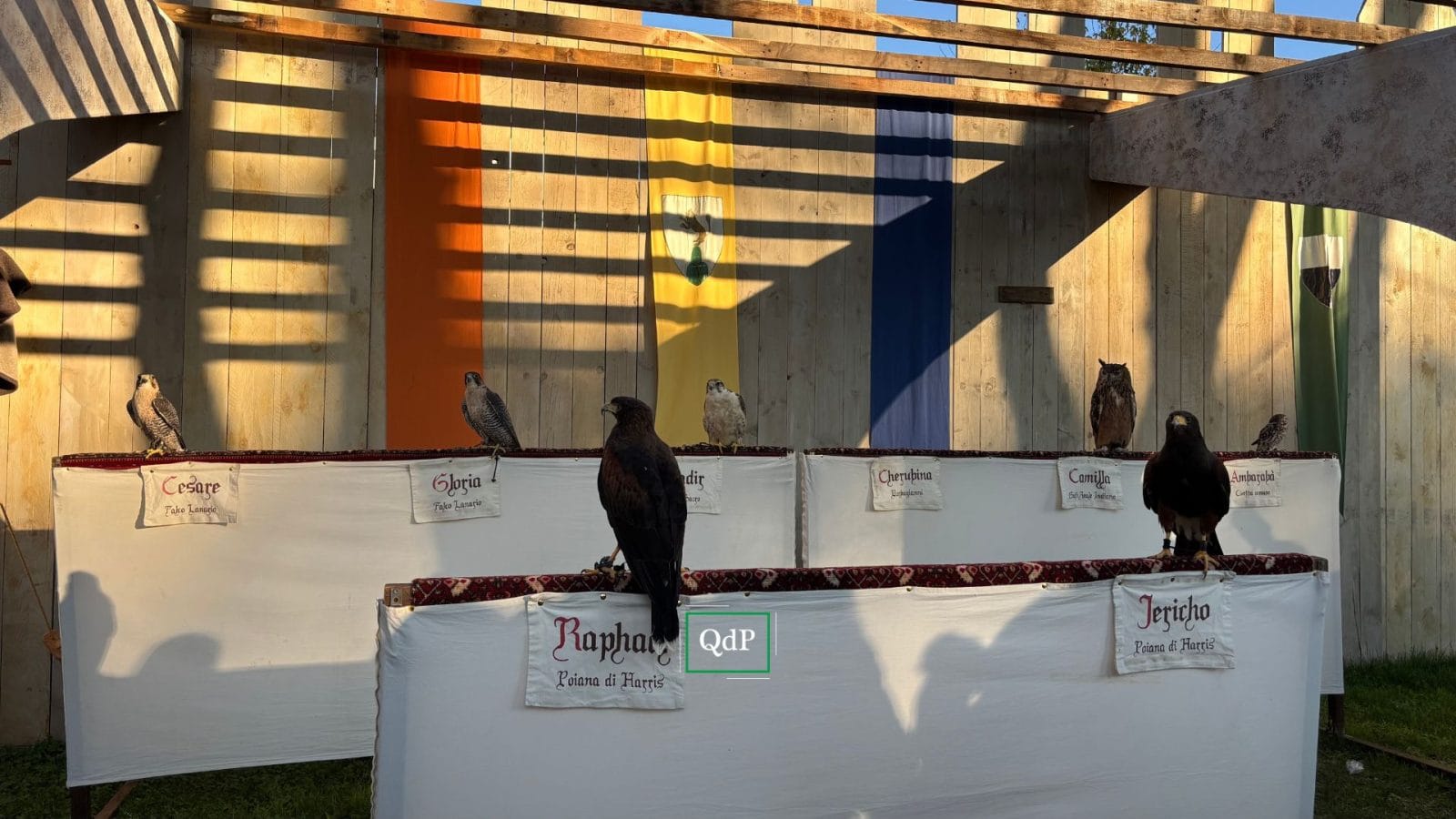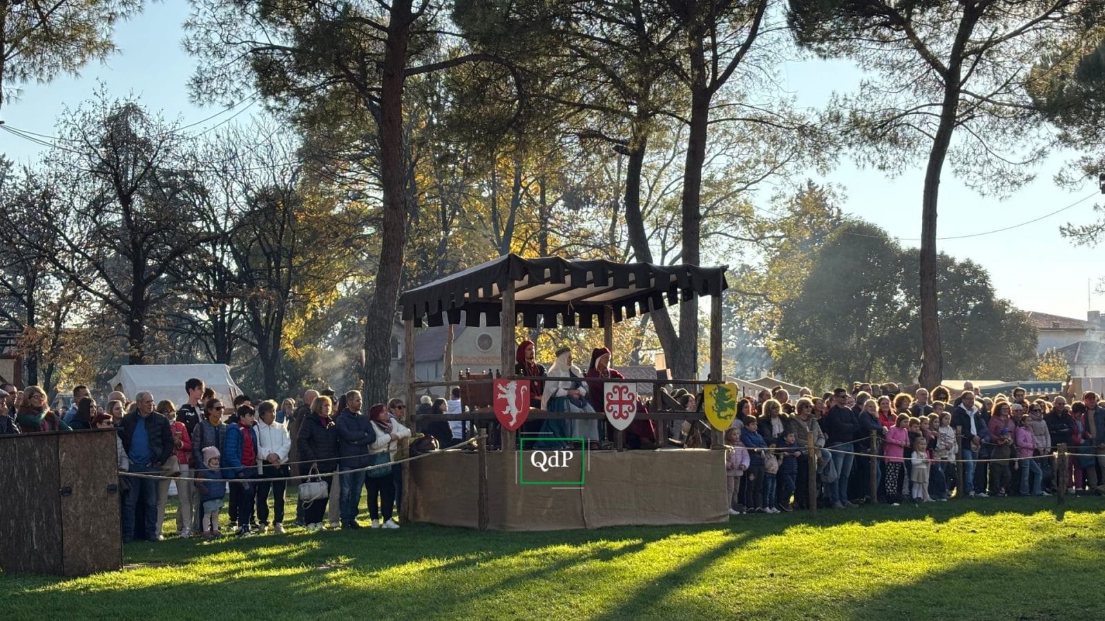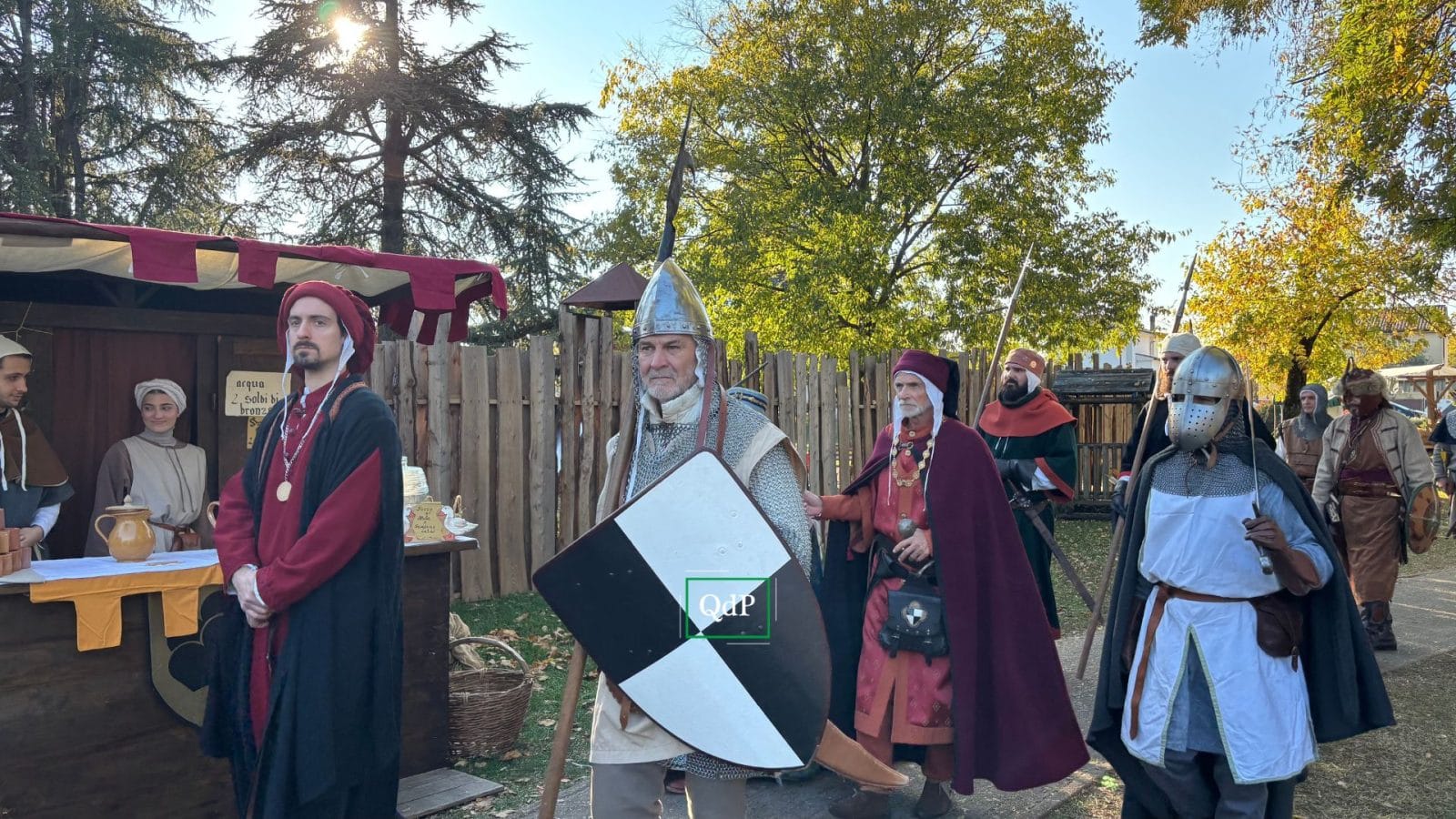 Dame e figuranti a passeggio, mentre sul campo si alternano le sfide tra cavalieri armati. Nel frattempo, un susseguirsi di spettacoli itineranti, esposizioni di bancarelle dei commercianti con le loro mercanzie, botteghe artigiane con i maestri al lavoro – ceramisti, pittori, sarte, produttori di saponi e altri piccoli manufatti -, performance di musici, mangiafuoco e falconieri hanno animato l’atmosfera medievale.