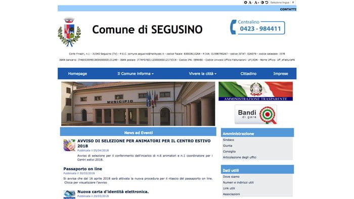 La giovane amministrazione guidata da Gloria Paulon, in questi mesi, ha portato a Segusino un vento di freschezza e molti progetti innovativi. L’ultimo in ordine di tempo è il miglioramento estetico e grafico del sito comunale  (nella foto).