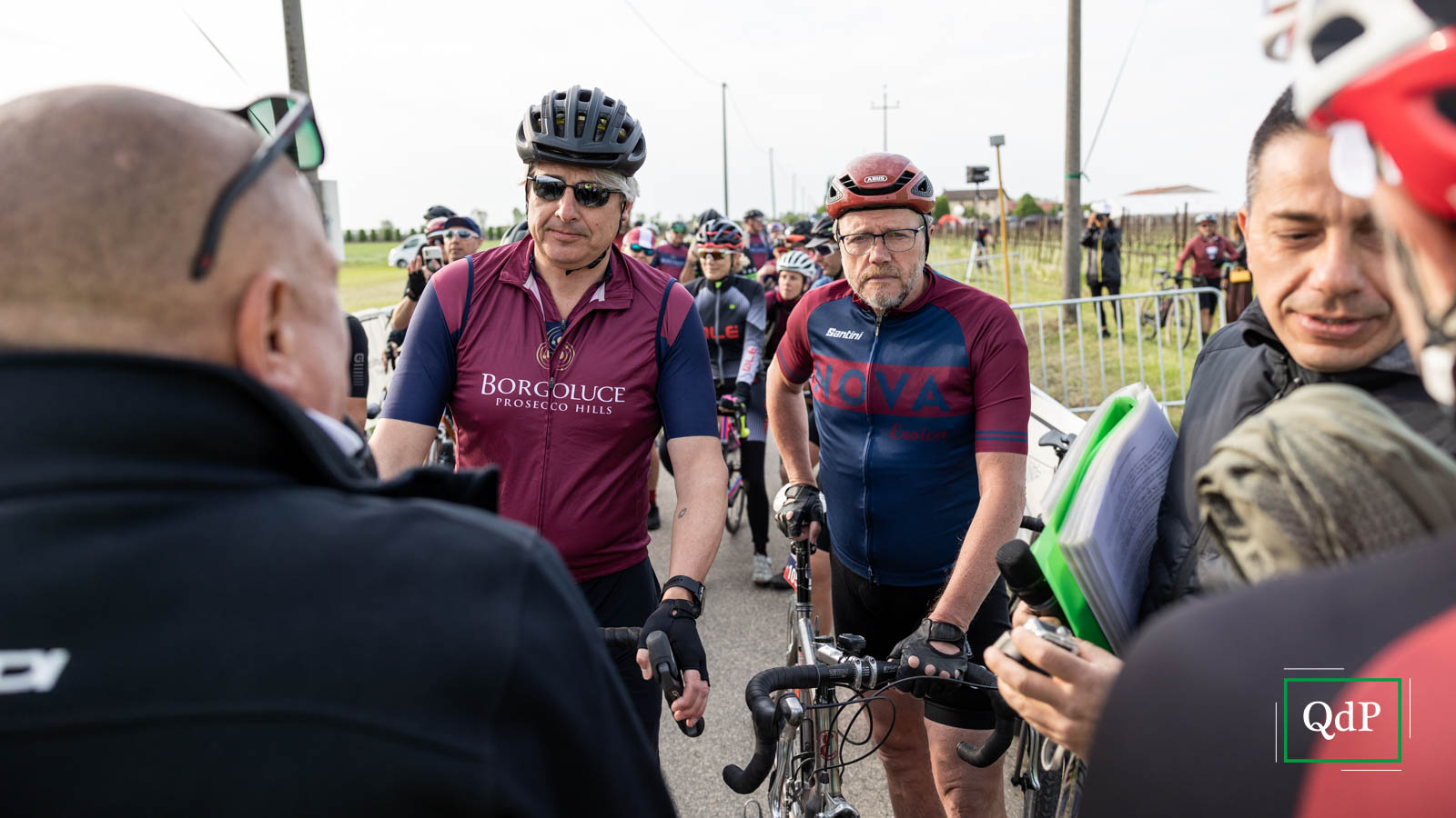 Tra i partecipanti, oltre che il campione del mondo Paolo Bettini, l’olimpionica Soraja Paladin, il pluricampione italiano Giovanni Visconti anche il presidente del comitato organizzativo dell’edizione veneta e titolare dell’azienda Borgoluce Lodovico Giustiniani e il direttore dell’associazione per il patrimonio delle colline del prosecco di Conegliano e Valdobbiadene docg, Giuliano Vantaggi.