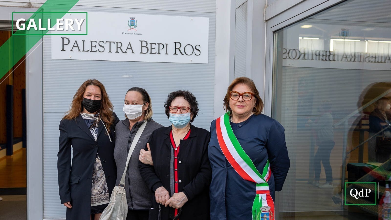 Presenti alla cerimonia di intitolazione, oltre a tutta la giunta del Comune di Susegana, il presidente del Priula Basket (che ha in gestione la struttura) Christian Zanardo, la moglie di Ros, Maria, e le due figlie Mary e Patrizia.