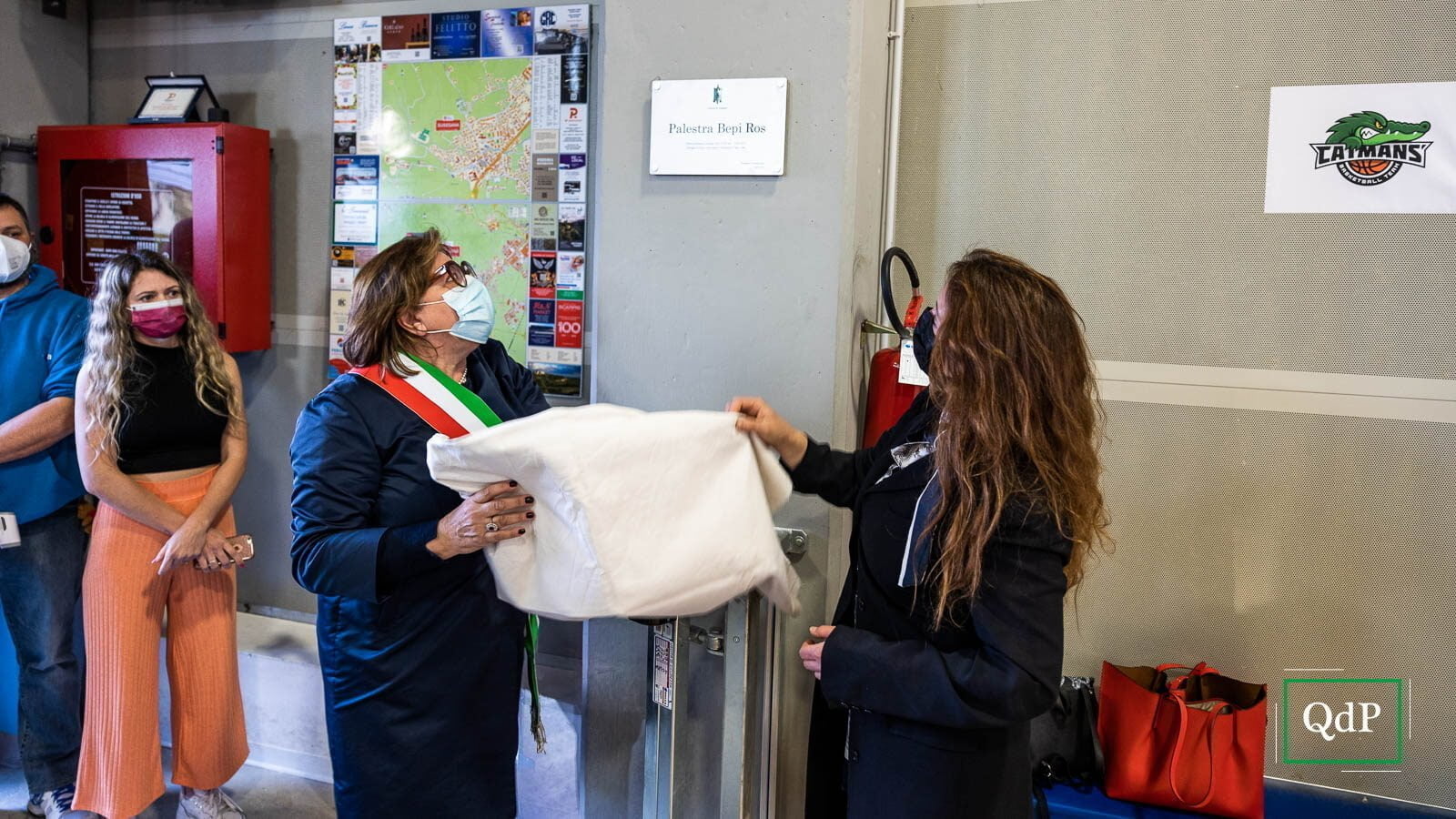 “Questa palestra è stata inaugurata 10 anni fa – ha detto il sindaco Vincenza Scarpa durante il suo discorso – e di fatto per tutto questo tempo non ha avuto un nome e tutto sommato non se ne sentiva nemmeno la necessità. Alcuni la chiamavano ‘la palestra accanto all’Arcobaleno’, altri la ‘Nuova Arcobaleno’. Nel momento in cui è venuto a mancare Bepi Ros, subito, coralmente, si è pensato che fosse giusto che questa palestra fosse intitolata a una persona così importante per lo sport, per Susegana e per Ponte della Priula. In questo paese, dove c’era una scuola di Boxe importantissima, Ros ha iniziato i suoi allenamenti ed è diventato l’uomo e lo sportivo che tutti abbiamo conosciuto. La speranza è che il ricordo non si fermi a questa intitolazione, ma venga mantenuto anche attraverso l’organizzazione di un torneo, seppur di pallacanestro. È giusto che questa palestra sia intitolata a chi ha portato il suo Comune ai massimi livelli sportivi“.