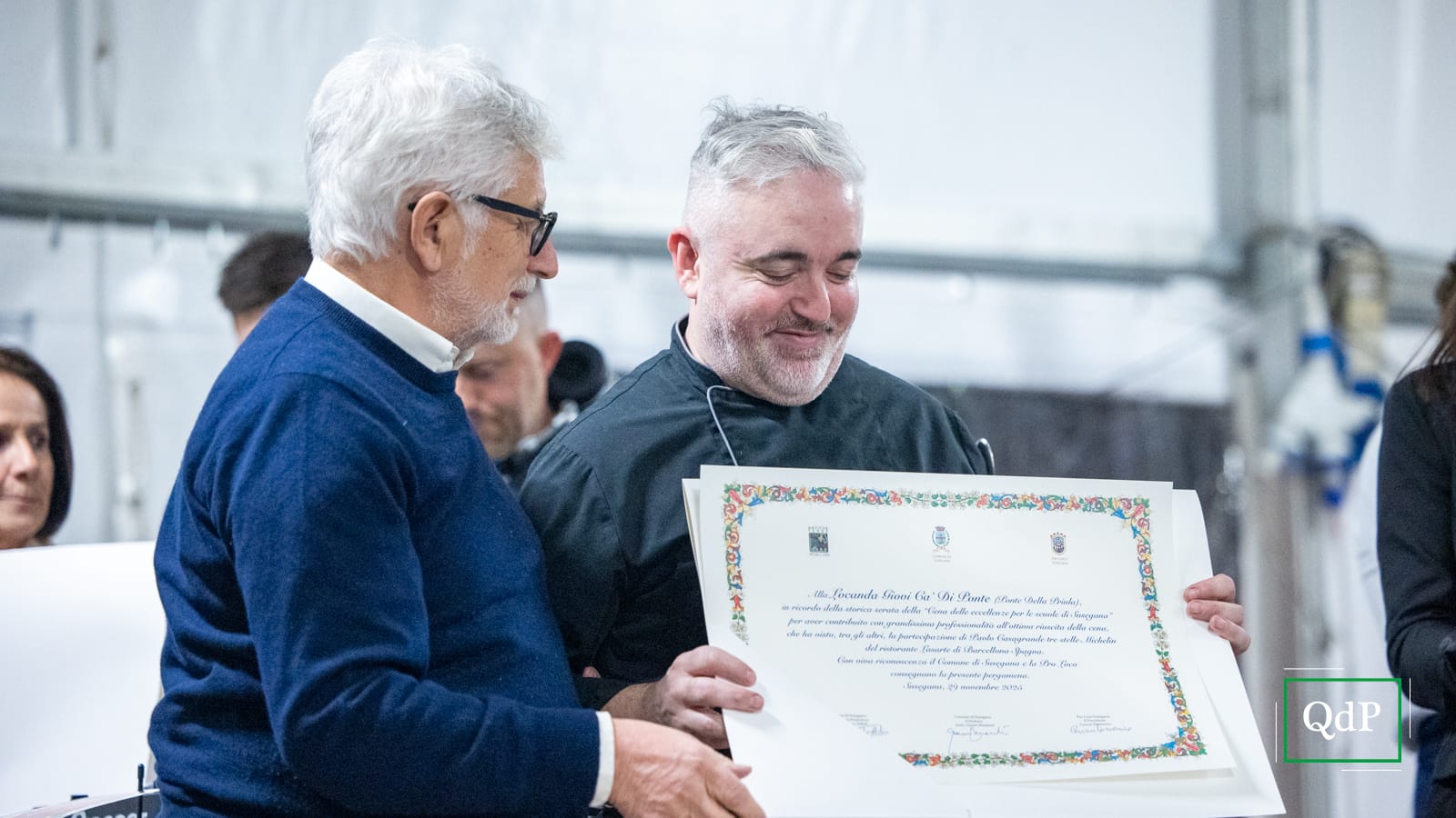 Al termine, l’amministrazione comunale ha consegnato una pergamena a Casagrande, ai ristoratori coinvolti e agli studenti del Beltrame, protagonisti in cucina e in sala. I vini sono stati serviti dalla delegazione veneta dell’Associazione italiana sommelier.