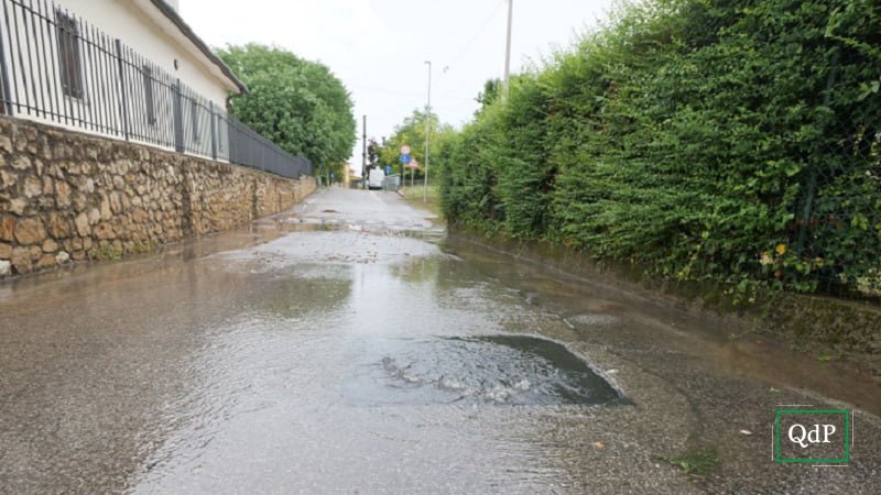 In via Calmontera, a un certo punto, i tombini non sono più riusciti a ricevere l’acqua che cadeva, e così acque bianche e nere hanno iniziato a sgorgare, allagando la sede stradale che è stata prontamente ripulita dai residenti.