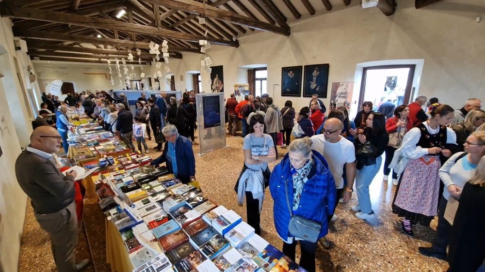 Il castello è stato anche teatro musicale: le note dell’Ensemble Palladio hanno riempito le sale con intermezzi musicali, accompagnando gli spostamenti dei visitatori e sottolineando la contaminazione tra parola e suono. Ma il grande interesse dei visitatori è stato tutto per il cuore della fiera: oltre 50 editori indipendenti hanno occupato le sale del castello, proponendo centinaia di titoli – narrativa, saggistica, poesia, libri per ragazzi – rendendo tangibile l’idea di terra di libertà e scoperta che il Comune di Susegana da anni promuove come cifra identitaria dell’evento.