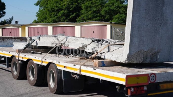 Qualche disagio questa mattina, lunedì 24 giugno, poco dopo le ore 8, per la perdita di materiale in cemento (nella foto in alto) da un rimorchio, appena dopo il Ponte sul Piave, a Susegana.