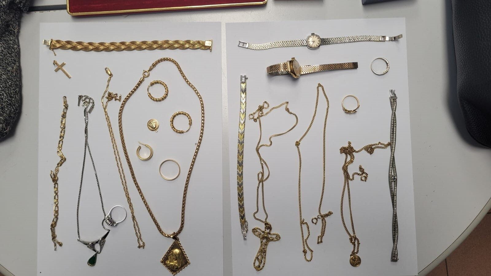 Padre e figlie, tutti e tre già noti alle Forze dell’ordine, sono stati identificati e dichiarati in stato di arresto per furto aggravato in abitazione in concorso e resistenza a Pubblico Ufficiale. L’involucro citato è stato recuperato dai militari: conteneva tre cofanetti porta gioielli con una ventina tra collanine e bracciali in oro giallo e oro bianco, anelli, orecchini e un paio di orologi di pregio (averi sottratti poco prima in abitazione e che venivano restituiti al legittimo proprietario) nonché una torcia e due cacciaviti che sono stati posti sotto sequestro unitamente a 1.500 euro in contanti, due chiavi “passepartout” e materiale per il travisamento (cappellini e occhiali da sole) recuperati nell’autovettura danneggiata degli indagati.