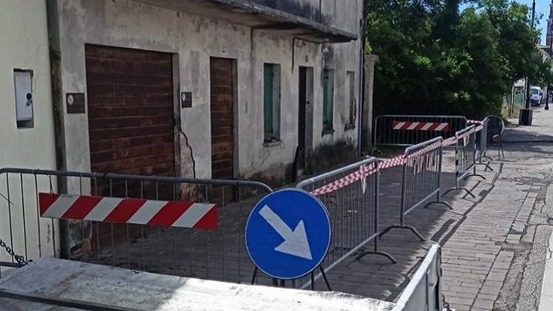 Dopo il maltempo dello scorso venerdì è stato necessario transennare un edificio in via Risorgimento a Signoressa per problemi di sicurezza.
