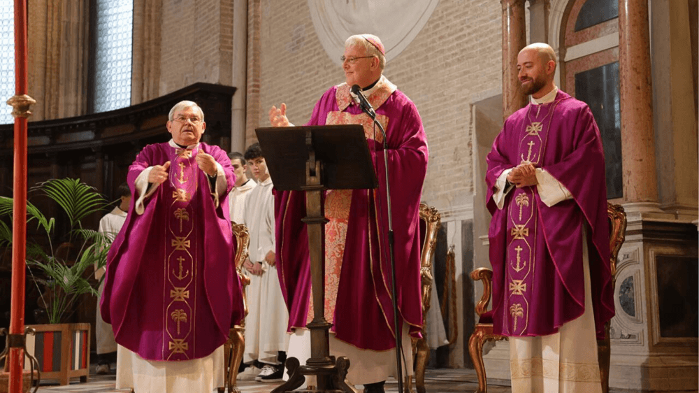Gli studenti della Scuola secondaria di primo e secondo grado del Collegio Vescovile Pio X hanno celebrato il Natale con la messa di venerdì 19 dicembre a San Nicolò, celebrata dal vescovo di Treviso, mons. Michele Tomasi, e concelebrata dal rettore del Collegio, mons. Lucio Bonomo e dal padre spirituale, don Giacomo Crespi. Presente anche il personale della scuola, che si è unito in un momento di riflessione e spiritualità prima delle feste.