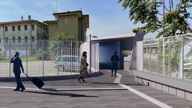 • Accesso lato sinistro del fabbricato, passando accanto alla torre dell’acqua: questo percorso permetterà di raggiungere direttamente il primo marciapiede e, da lì, accedere al Sottopasso 1 per il collegamento con gli altri binari e l’uscita lato San Zeno.