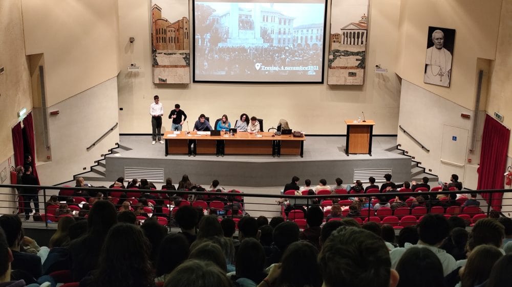 Le ricerche degli studenti sono iniziate dalle prigioni gestite dalle camicie nere, negli scantinati di quello che oggi è proprio il Pio X, per allargare, poi, lo sguardo alle deportazioni e “bonifiche” per realizzare il quartiere di Città Giardino, fino all’orrore, proprio a due passi da casa, del campo di concentramento di Monigo, nella caserma Cadorin e, infine, al mito degli “italiani brava gente”, che in tanti casi, dopo la fine del regime, ha impedito all’apparato burocratico e statale di fare i conti con le proprie responsabilità. “La prima emozione nell’apprendere queste cose è stata quella della sorpresa – hanno chiarito -. Quando pensiamo al male, anche a quello che succede oggi, non pensiamo mai che possa accadere dietro casa nostra. E, invece, è proprio così”.