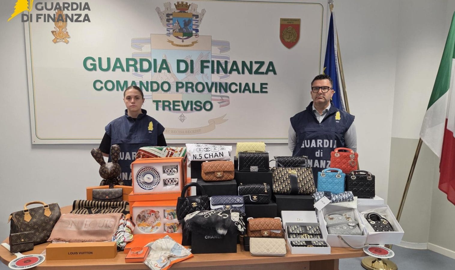 I capi di abbigliamento e gli accessori rinvenuti, che presentavano un elevato livello di cura dei dettagli, riportavano i marchi contraffatti di noti brand di alta moda come CHANEL, LOUIS VUITTON, HERMES, BALENCIAGA, DIOR, SAINT BARTH, FENDI, TIFFANY, GIVENCHY, FERRAGAMO e GUCCI, per un valore di circa 100 mila euro.