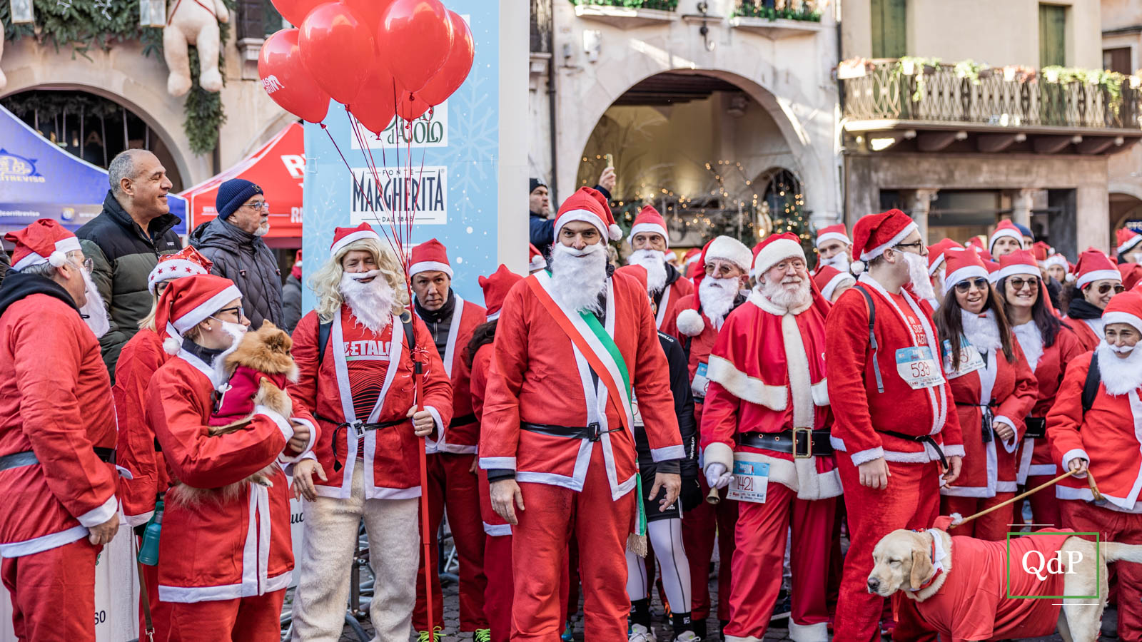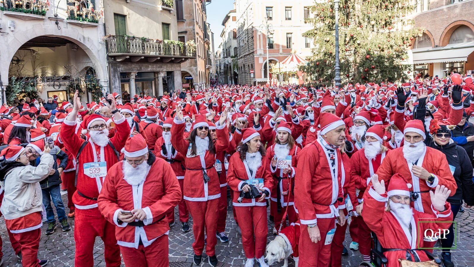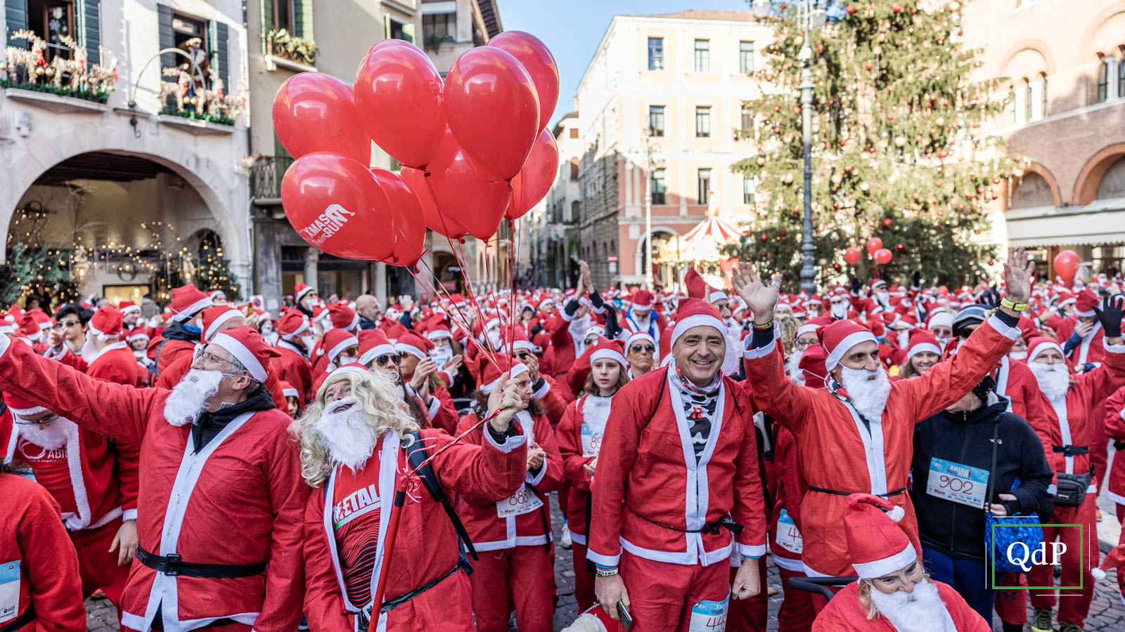 Più di 1.500 babbi natale (1.685 per l’esattezza) hanno invaso nella mattinata di oggi giovedì la città di Treviso. Un lungo serpentone rosso ha percorso le strade cittadine lungo i cinque chilometri della X-Mas Run. I partecipanti hanno potuto attraversare gli angoli più suggestivi della città dalla partenza in piazza dei Signori dove ieri è stato acceso l’albero di Natale (qui l’articolo) fino all’arrivo sulle mura.