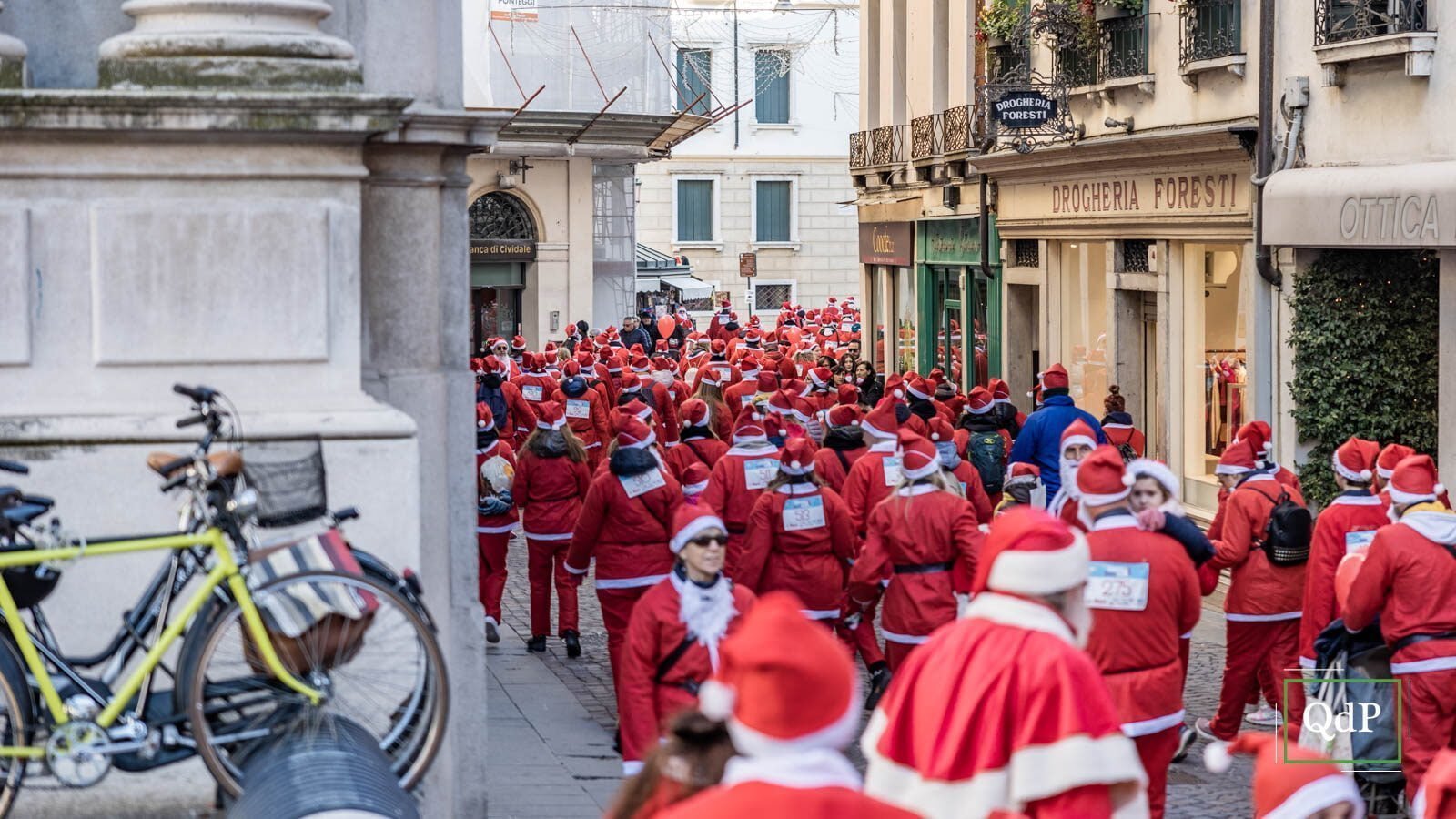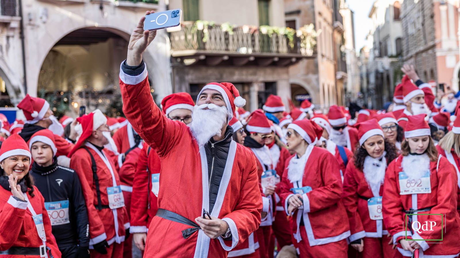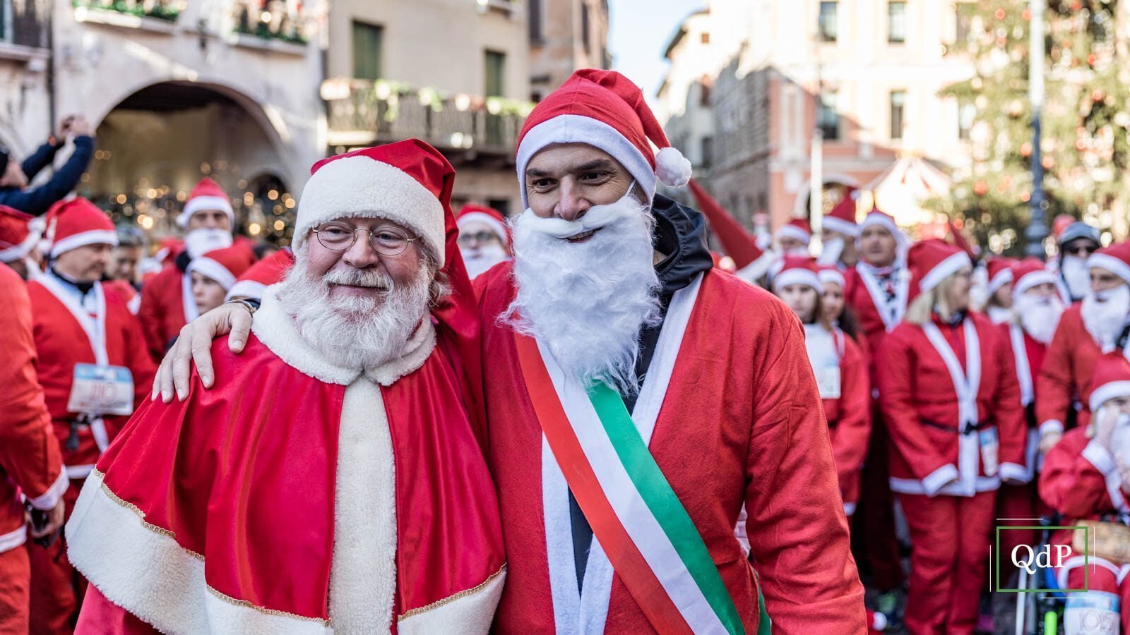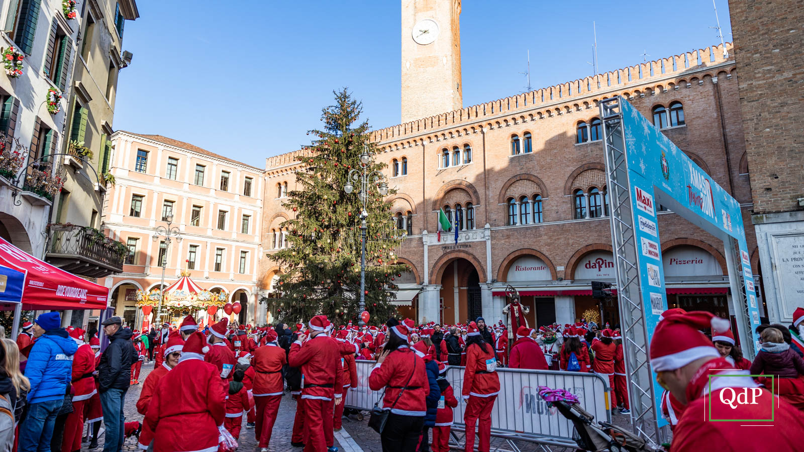 Più di 1.500 babbi natale (1.685 per l’esattezza) hanno invaso nella mattinata di oggi giovedì la città di Treviso. Un lungo serpentone rosso ha percorso le strade cittadine lungo i cinque chilometri della X-Mas Run. I partecipanti hanno potuto attraversare gli angoli più suggestivi della città dalla partenza in piazza dei Signori dove ieri è stato acceso l’albero di Natale (qui l’articolo) fino all’arrivo sulle mura.