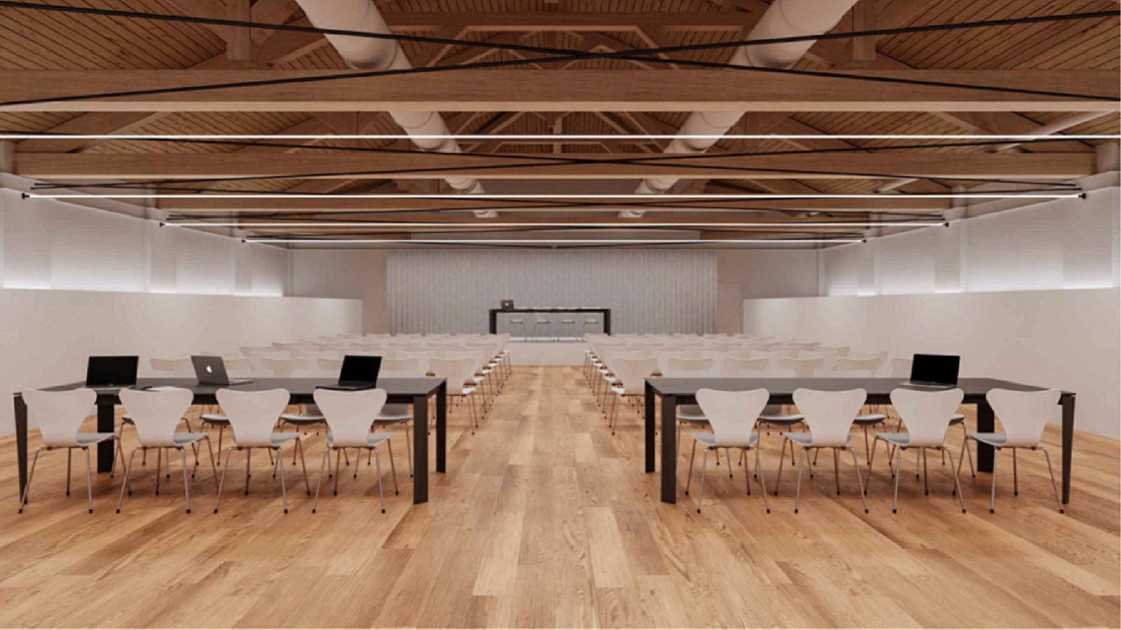 Il progetto di completamento, il cui obiettivo era inizialmente la ristrutturazione dell’ala nord del fabbricato al fine di un miglioramento sismico e di un efficientamento energetico della struttura, prevede inoltre la realizzazione di una struttura scatolare suddivisa in tre piani: il piano terra e il piano primo saranno adibiti ad archivio, mentre il piano secondo ospiterà un’ampia sala conferenze caratterizzata da una nuova copertura restaurata la cui struttura portante, composta dalle capriate in legno originarie e restaurate, rimarrà a vista.