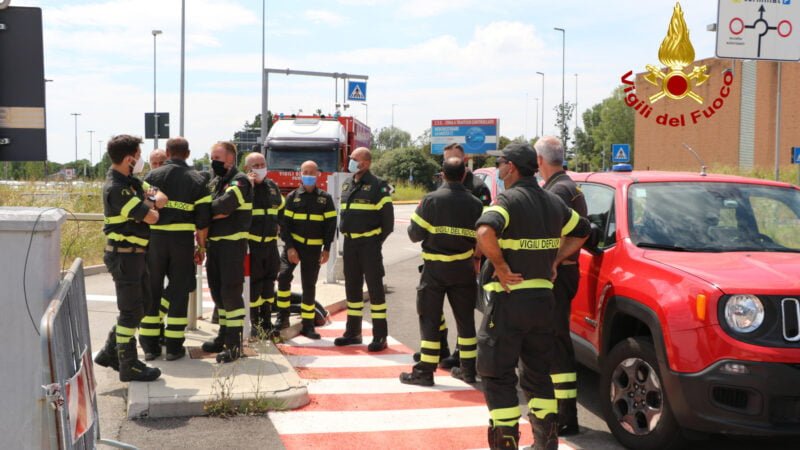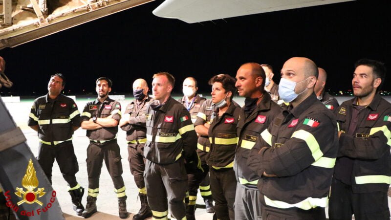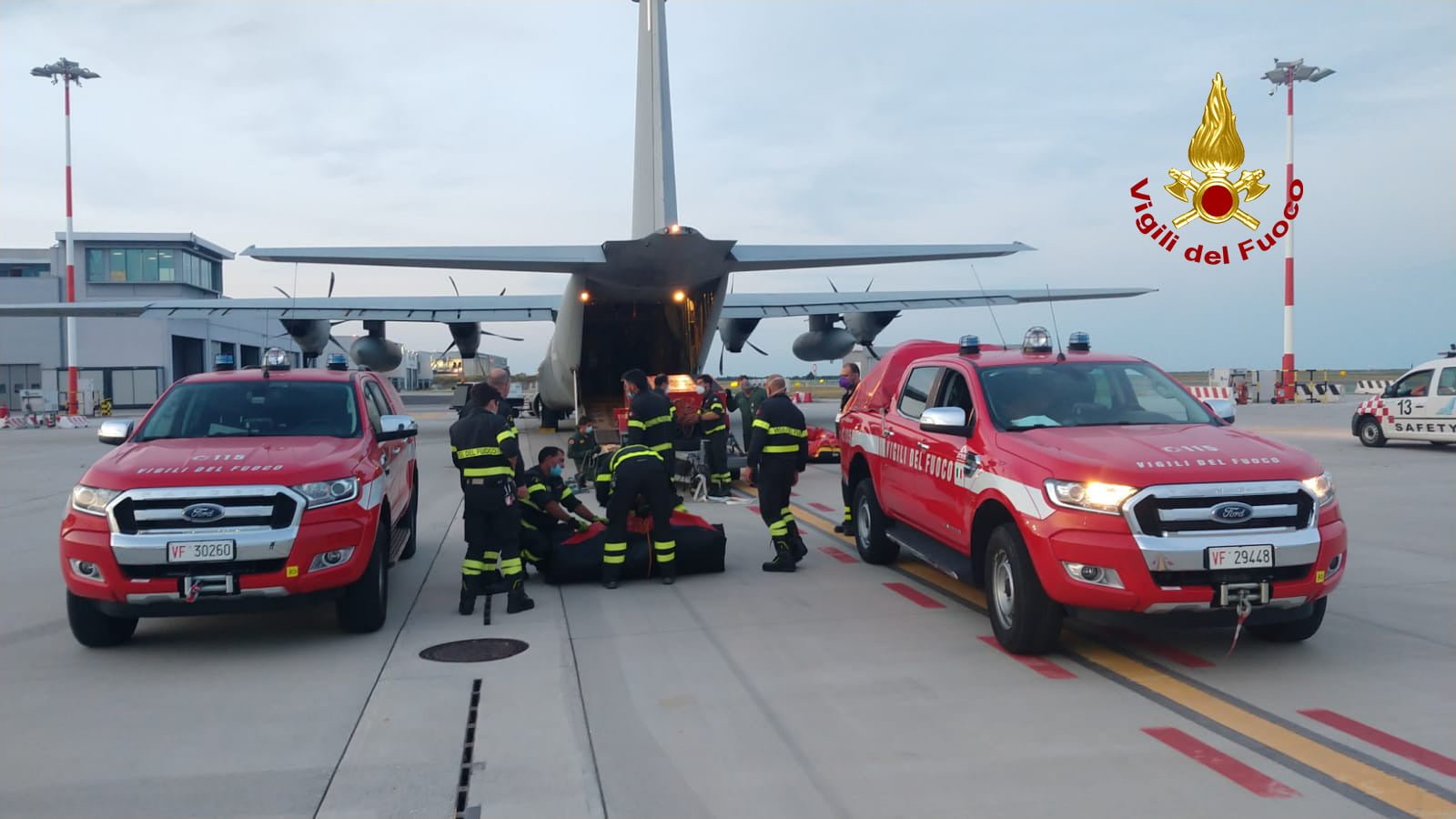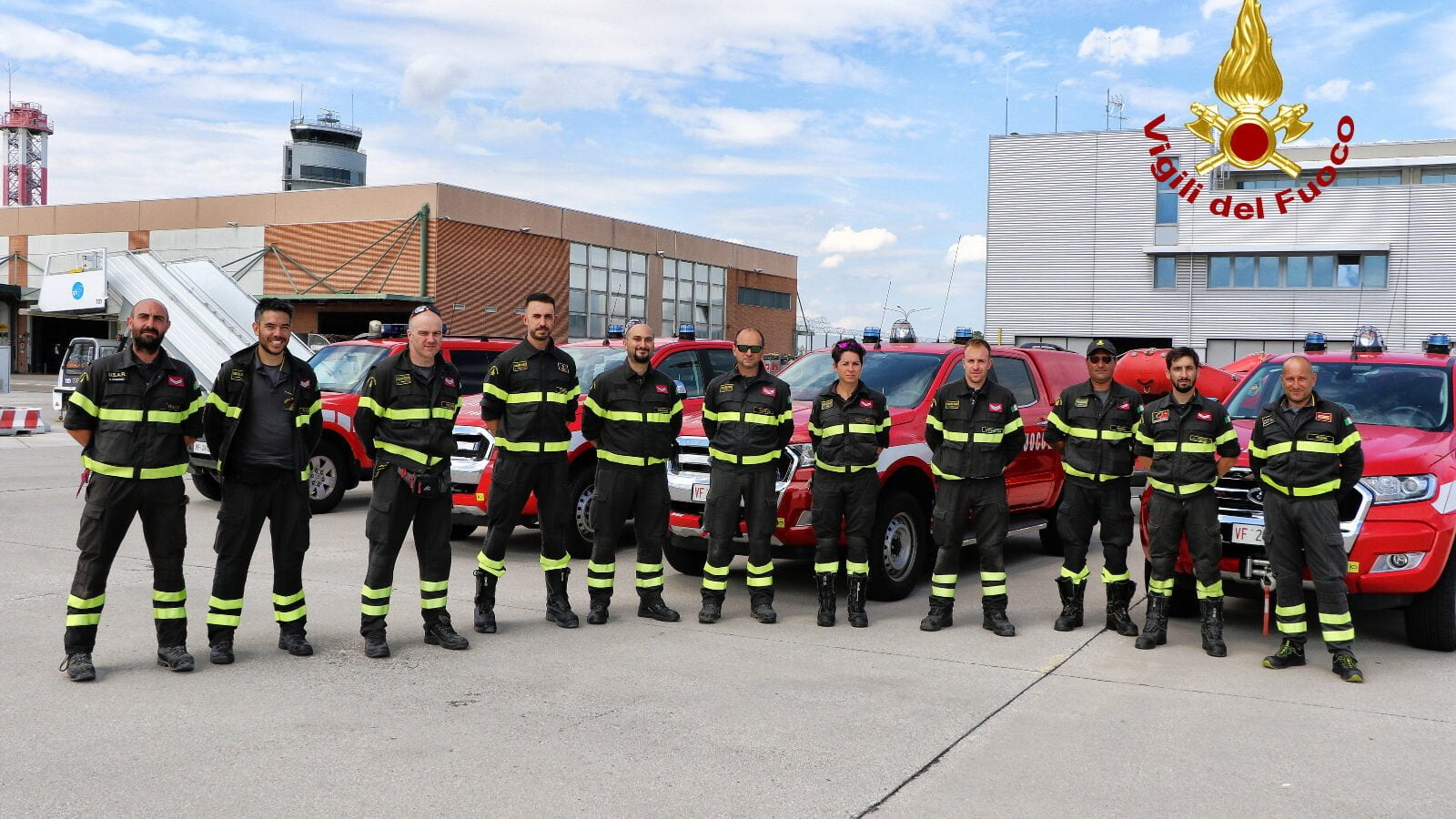 A salutare i vigili del fuoco in partenza il direttore interregionale dei vigili del fuoco Loris Munaro e il comandante vicario di Venezia Calogero Barbera.