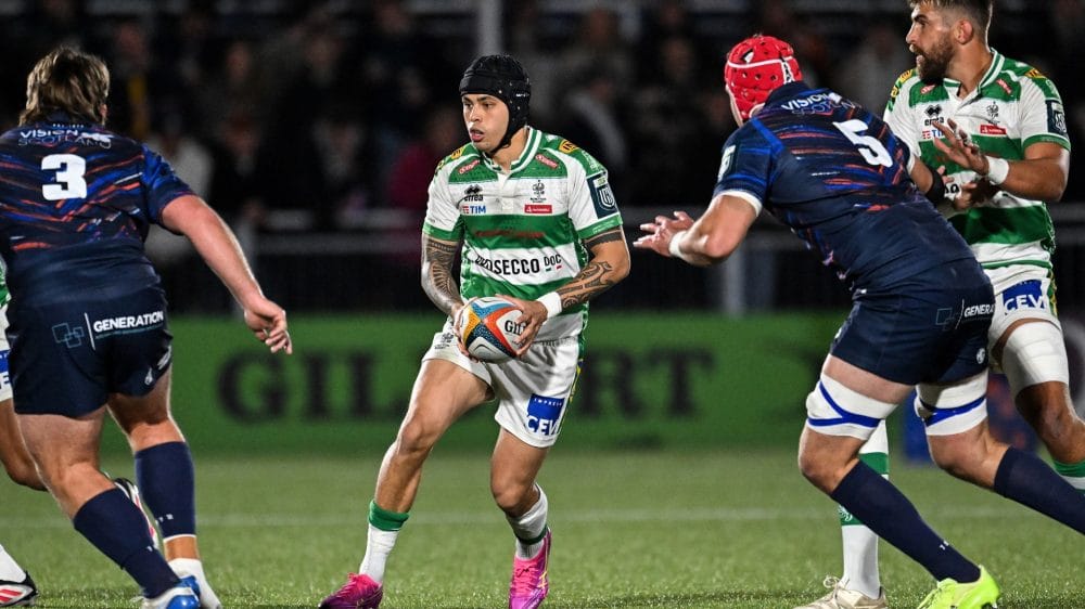 C’è un avvicendamento dell’ultima ora: Siua Maile è costretto al forfait e scala a tallonatore titolare Bautista Bernasconi. In panchina subentra Nicholas Gasperini. Inizia la partita e Edimburgo va subito avanti con la meta sulla bandierina di van der Merwe. Scott trasforma. I padroni di casa aumentano i giri del motore e segnano un’altra meta con la percussione centrale di Richardson. Scott non sbaglia in mezzo ai pali. I biancoverdi cercano di andare a marcare, ma per imprecisioni di carattere tecnico manca l’ultimo passaggio per varcare la linea di meta avversaria. Gli scozzesi vogliono sfruttare il gioco aereo e ritornano nei 22 metri trevigiani. Così Edimburgo segna la terza meta sulla bandierina tramite l’accelerazione di Graham. Scott trasforma e il primo tempo termina con i padroni di casa avanti 21-0.
