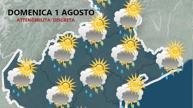 Domenica 1 agosto, secondo i modelli ad oggi consultati, sarà una giornata all’insegna della variabilità/instabilità con rovesci e temporali presenti un po’ d’dappertutto, dalle alpi alla costa.