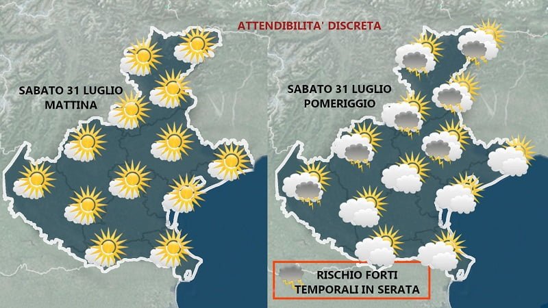 Domani, sabato 31 luglio, sarà una giornata discreta, con cielo poco o parzialmente nuvoloso in particolare dalle ore centrali per attività cumuliforme in sviluppo dalle dolomiti.
