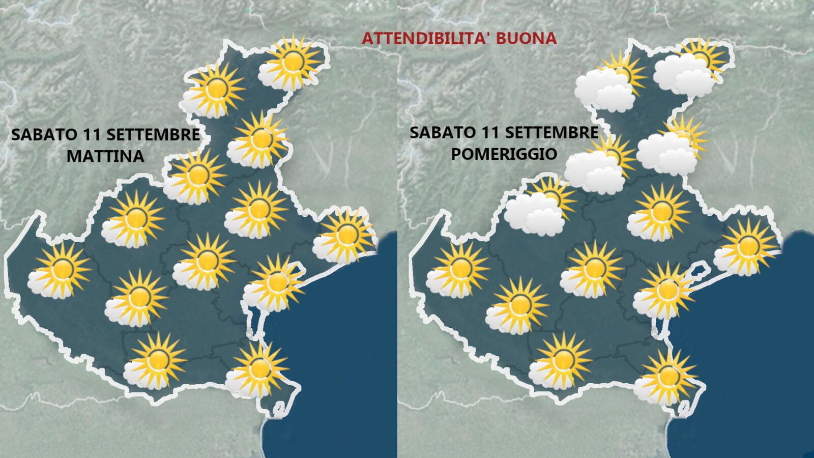 Domenica 12 settembre invece sarà una giornata all’insegna del tempo soleggiato, al mattino cielo sereno o poco nuvoloso, salva la presenza di qualche stratocumulo a ridosso dei rilievi prealpini con possibili nubi basse nella Valbelluna ma in progressivo diradamento.
