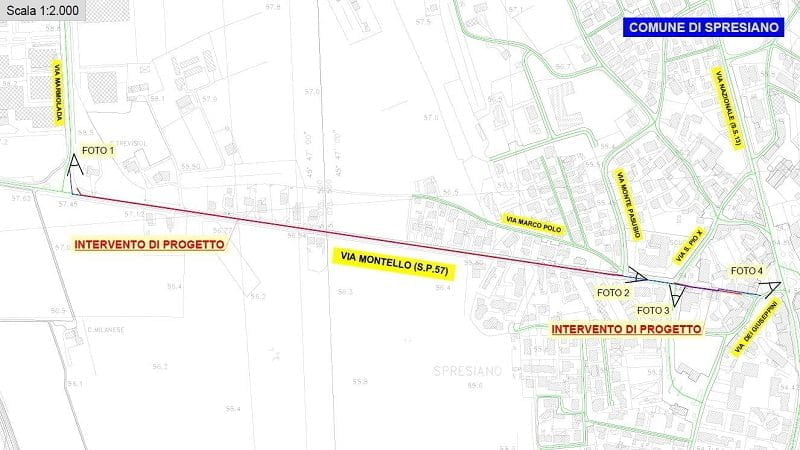 L’opera nel comune di Spresiano riguarda la strada che collega la zona industriale di Via Marmolada al centro storico del comune. Grazie a tale cantiere, la zona industriale, già provvista di un sistema fognario attualmente non in esercizio, sarà collegata alla rete pubblica.