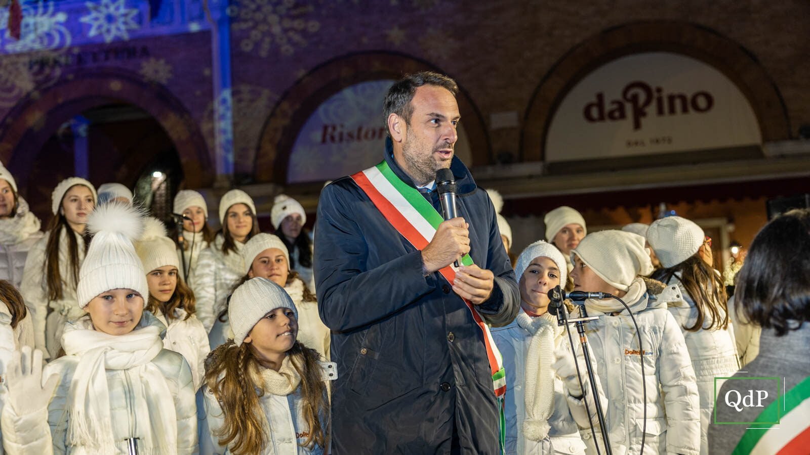 Centinaia di persone riunite in piazza dei Signori a Treviso hanno assistito mercoledì sera, 7 dicembre, al tradizionale spettacolo di accensione dell’albero di Natale che dà ufficialmente il via al periodo natalizio in città.