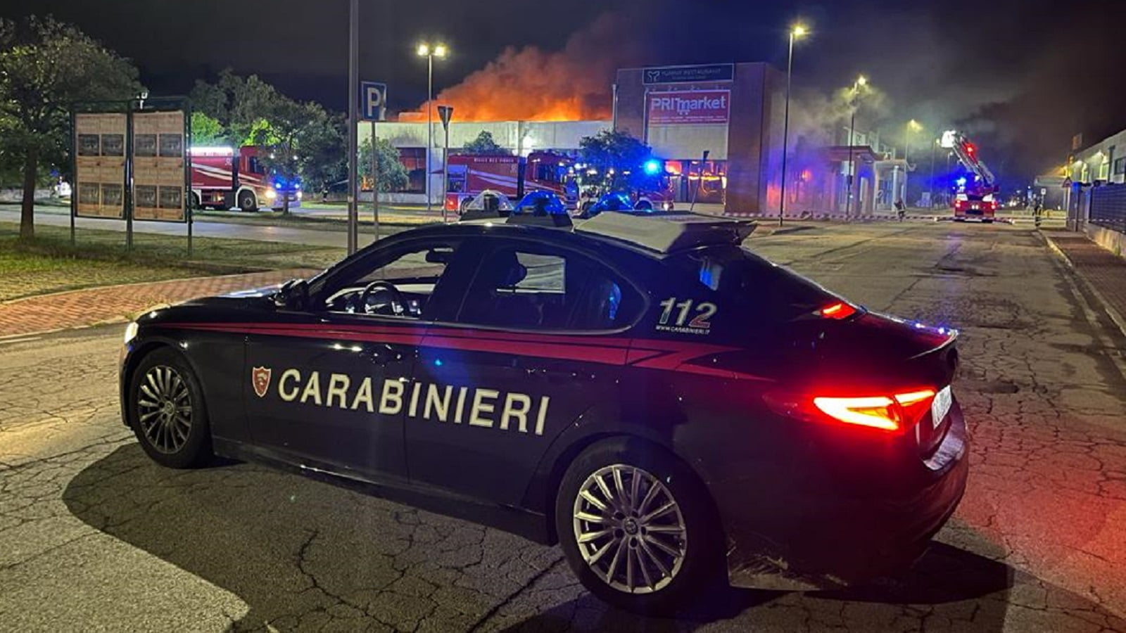 Una pattuglia dei Carabinieri nel luogo dell’incendio