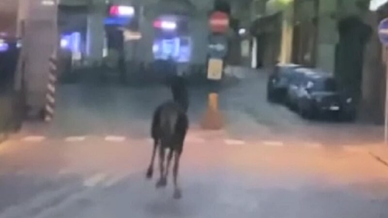 L’autore del video di circa 30 secondi, presto diventato virale sul web e in particolare sui gruppi social locali, è riuscito a seguire l’animale fino a un certo punto, e ora è grande la curiosità per conoscere le sorti del quadrupede, che si è “esibito” anche in un salto della siepe nei pressi del monumento di piazza Vittoria.