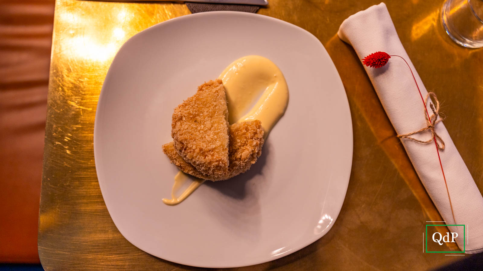 “Il lu rou fan è un piatto millenario composto da un riso acidificato con aceto di riso (il lou), maiale brasato con zenzero, aglio, cipollotto e salsa di soia di vario tipo (rou) e da una salsa (fan)”. Per questo piatto Bianchin ha scelto le parti nobili del maiale quali spalla e pancia che ben si abbinano ai porri marinati e bruciati (come da tradizione) e all’uovo sodo onnipresente nei piatti asiatici.