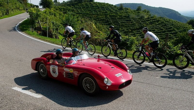 I loro motori non rombano, cantano. Il loro incedere è elegante. I piloti, che partecipano alla manifestazione turistico-sportiva tra le più prestigiose del suo genere, gareggiano in fair play, anche se sono in palio gigantesche bottiglie di “bollicine” per chi primeggia nelle prove cronometriche di abilità.