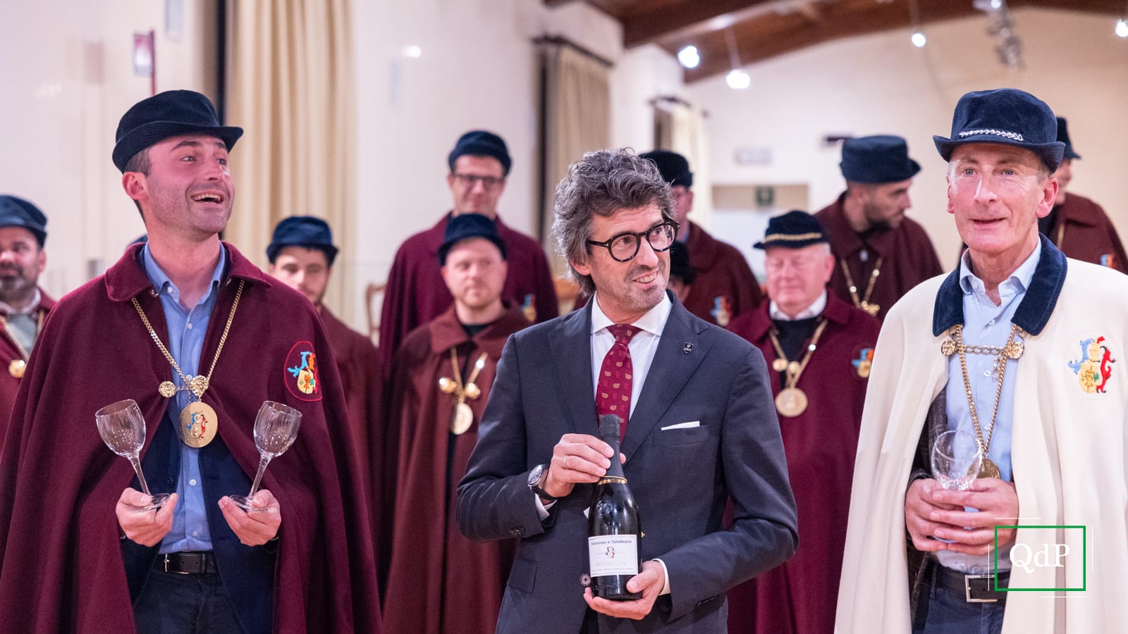 La cornice elegante di Villa dei Cedri ha ospitato la cerimonia di presentazione della Bottiglia della Confraternita 2025, ancora una volta firmata da Luigi Stramare Bortolomiol, scelto per il secondo anno consecutivo con una degustazione alla cieca tra i confratelli enologi.
