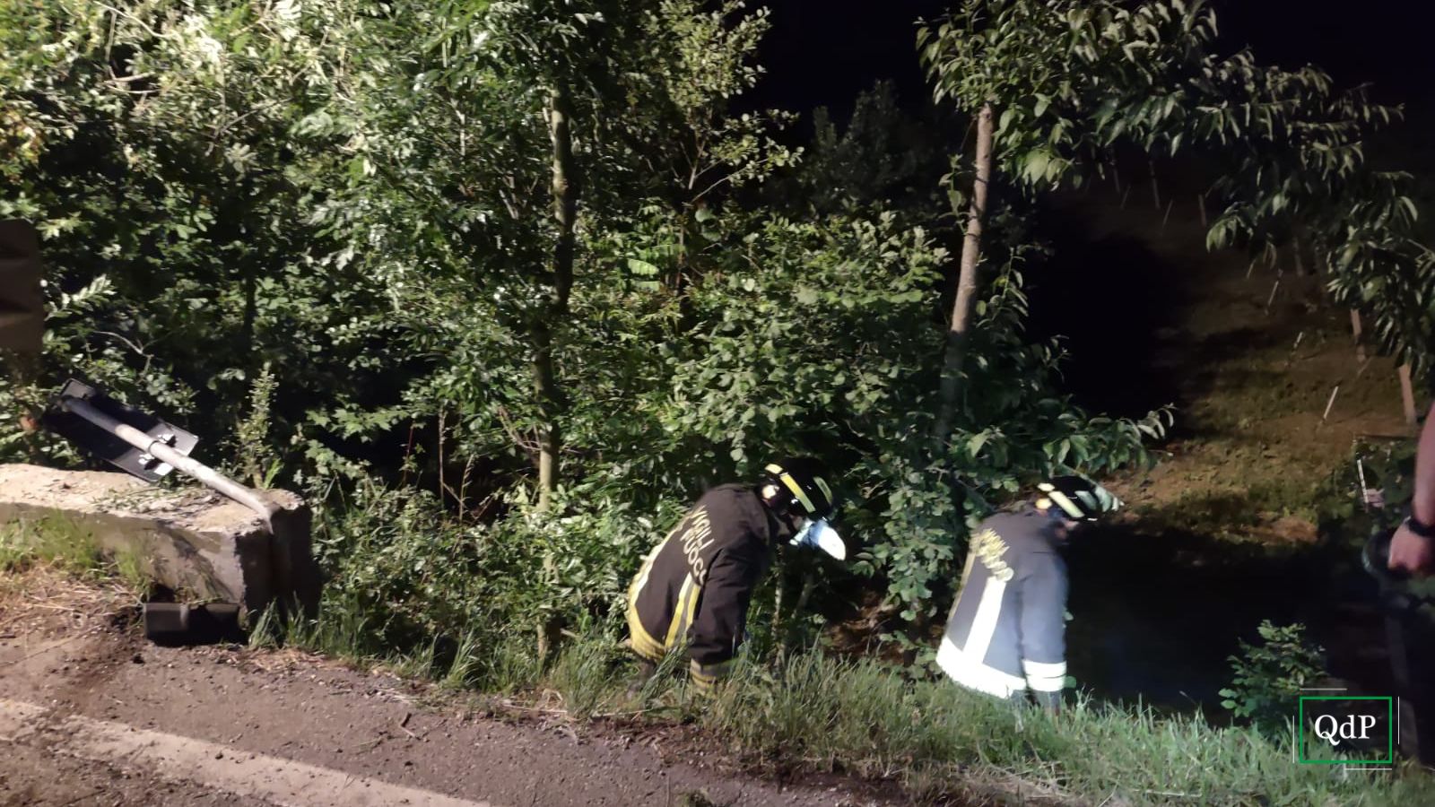 Stando alle prime ricostruzioni, un automobilista sulla trentina, M.P., residente nella zona, avrebbe sbandato con la propria vettura in prossimità del ponticello che sovrasta la Teva, collidendo contro un muretto e finendo nel fosso. L’auto avrebbe abbattuto un segnale stradale per poi sprofondare nella vegetazione.