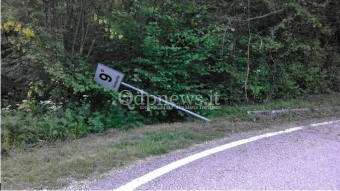 Nella notte ignoti hanno divelto una decina di cartelli stradali che segnalano il numero progressivo di tornanti lungo via San Francesco, all’incirca da località San Floriano fino al piazzale dei donatori della località montana valdobbiadenese.