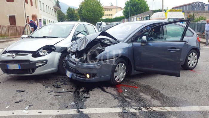 Da una prima ricostruzione, ma saranno i rilievi e gli accertamenti dei carabinieri subito intervenuti sul posto a fare chiarezza, una Citroen C4 grigio scuro stava procedendo da Bigolino verso Valdobbiadene quando una Fiat Punto guidata da un anziano, che scendeva da via Molini per inserirsi in via Erizzo, probabilmente non rispettando la precedenza, si è andata a scontrare con l’altra vettura.
