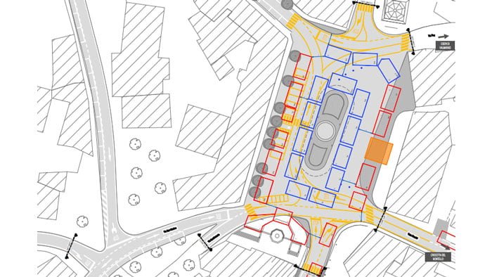 Dopo la modifica del sistema viabilistico, pedonale e ciclabile di piazza Guglielmo Marconi (nella planimetria e nella foto) e delle vie d’accesso, avviata in paese nello scorso mese di luglio, infatti, anche la “conformazione” dello storico mercato settimanale è stata adattata.
