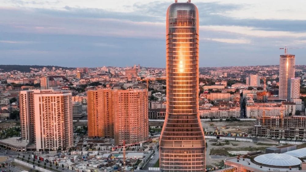 Dal quattordicesimo piano l’edificio ruota di 90 gradi lungo un’estensione di dieci piani. Da un’angolazione appare come una bottiglia slanciata, mentre da un’altra sembra una bottiglia capovolta. Questo rende la torre uno dei pochi edifici al mondo capaci di raggiungere una simile rotazione in un numero così ridotto di livelli. Con questo tratto distintivo, la Kula Tower si pone come un nuovo simbolo di Belgrado, emergendo nella rinascita architettonica della città dopo le devastazioni di fine Novecento.