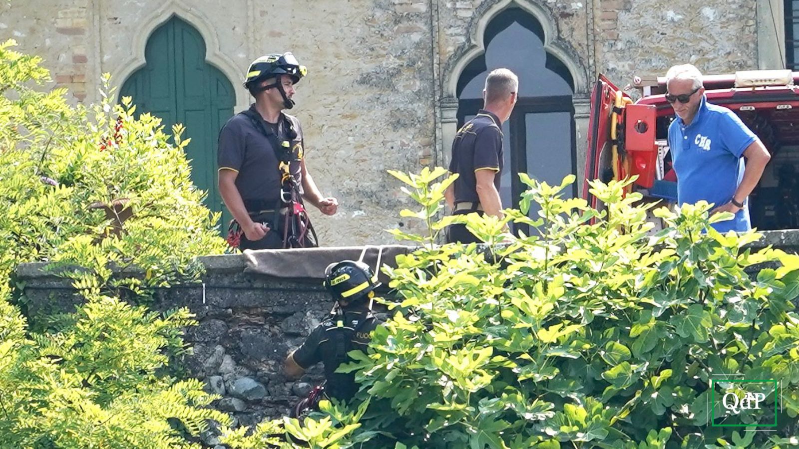 L’ingresso dei Carabinieri e dei Vigili del Fuoco, arrivati anche con i gommoni, è stato ritardato da un codice d’ingresso all’abbazia errato. Per questo motivo è dovuto intervenire il Conte che ha cercato di non farsi vedere da giornalisti e fotografi.