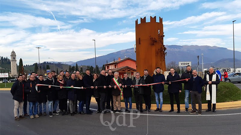 Grande festa ieri mattina, sabato 7 dicembre, a Vidor per l’inaugurazione della nuova rotonda posta lungo la strada provinciale 34 che attraversa il paese, con al centro le sculture artistiche in ferro battuto.