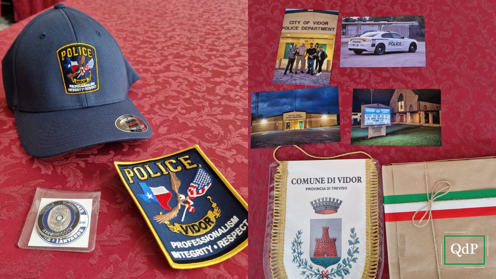 Questa mattina, mercoledì, sono stati consegnati in municipio a Vidor al sindaco Mario Bailo, in presenza della Polizia locale, un cappellino, un patch e una moneta da parte della polizia omonima della Vidor che sorge in Texas, uno degli Stati Uniti d’America.