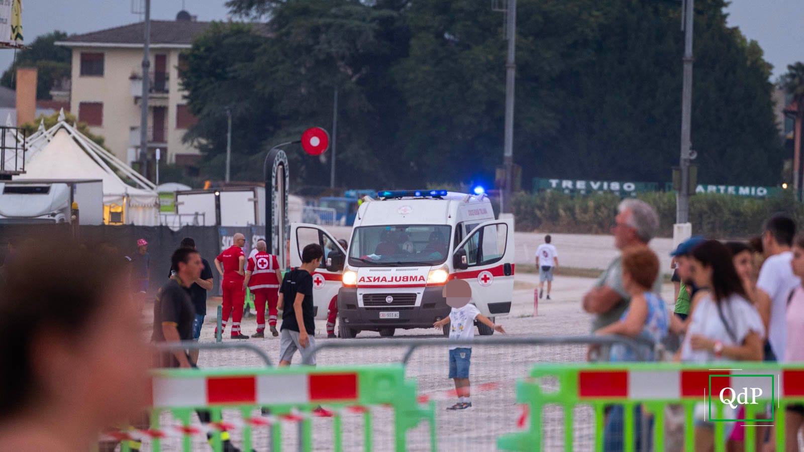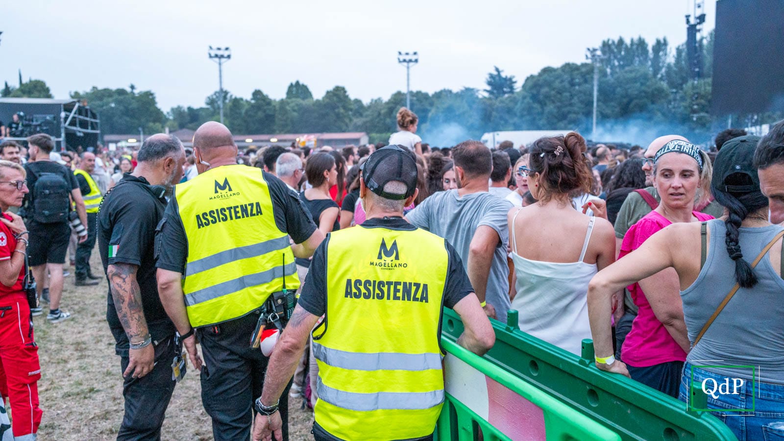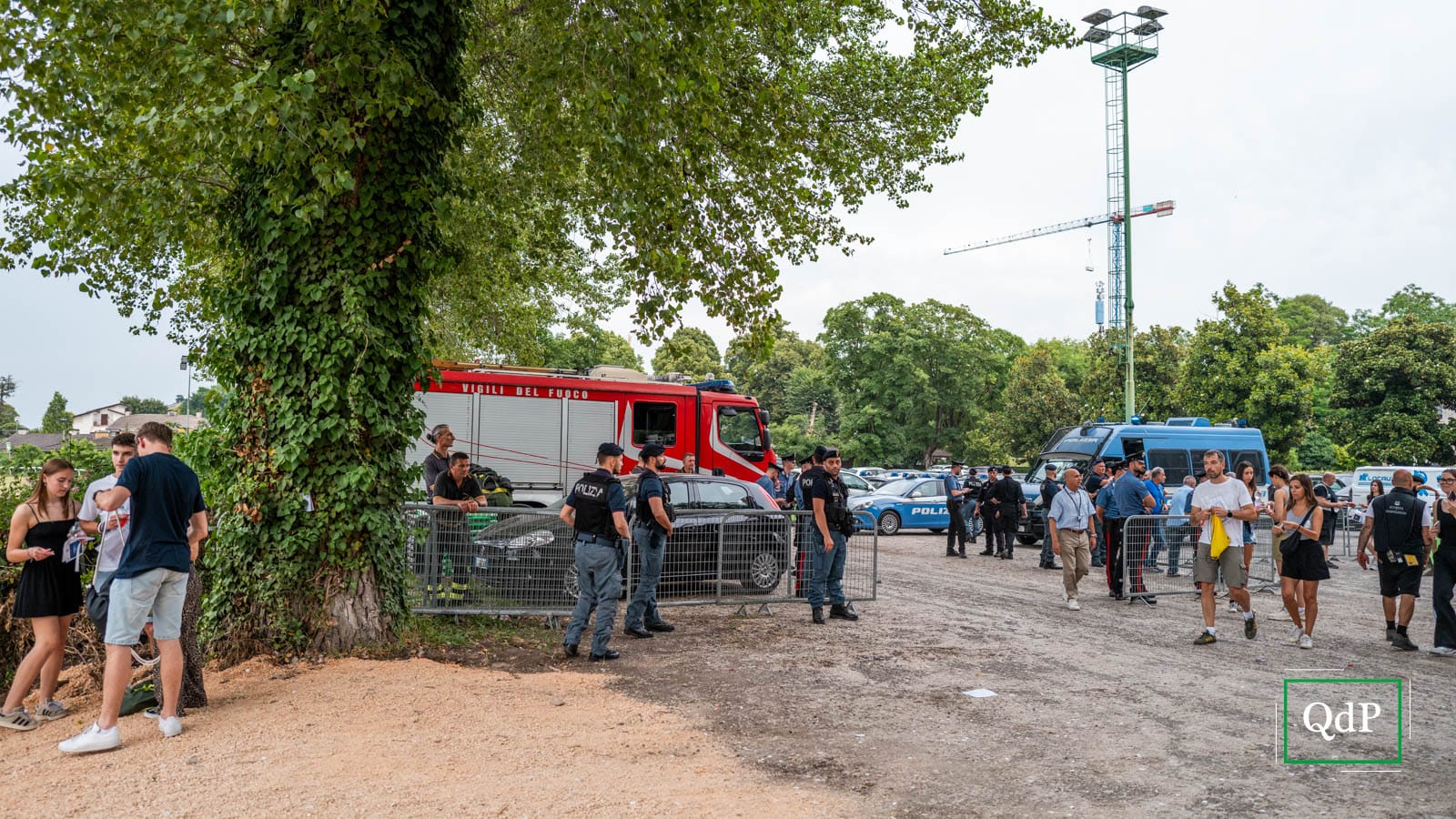 Numerosi anche i sanitari e i Vigili del Fuoco in servizio. Sebbene il caldo sia stato relativamente clemente (attorno alle 18 il cielo era coperto e la temperatura sopportabile), si sono registrati oltre 70 interventi da parte della Croce Rossa e del personale medico per malori tra il pubblico, due dei quali hanno richiesto il ricovero in pronto soccorso.