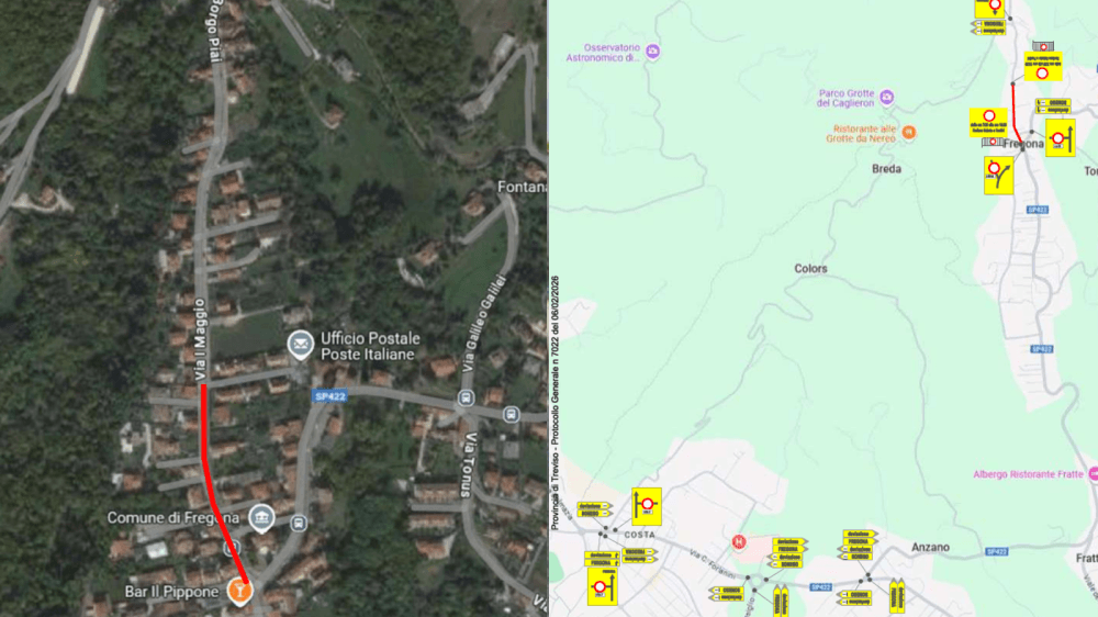 Pertanto, per gli automobilisti che vorranno raggiungere le frazioni a nord dell’abitato di Fregona, sarà istituita una deviazione sulle strade comunali del Comune di Vittorio Veneto, località Colors e via Costa Rive a decorrere dal 9 marzo e fino al 3 aprile o comunque fino a cessate esigenze.
