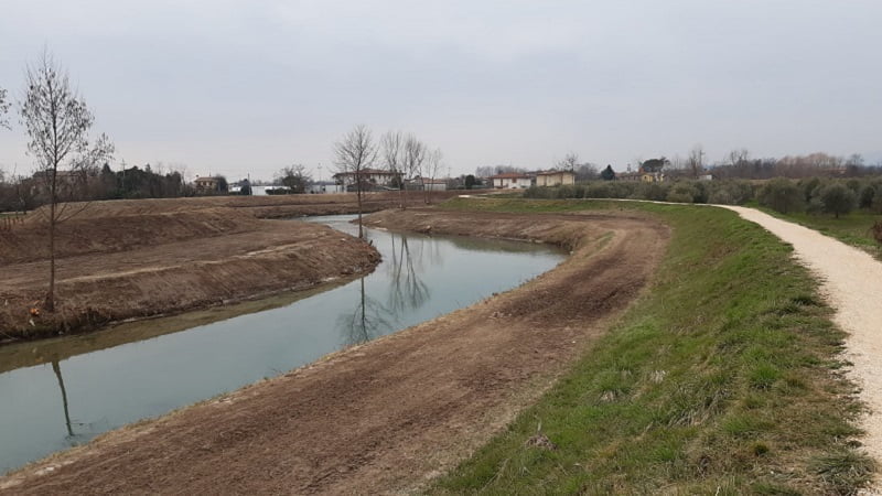 “In quell’occasione il corso d’acqua ha sormontato i muri d’argine in calcestruzzo in sinistra idraulica – prosegue Bottacin – mentre in destra ha sfondato un antico muro in pietrame e inondato gli edifici contigui a una villa storica e i terreni coltivati a vite nei dintorni della barchessa, con altezze d’acqua variabili dal mezzo metro al metro e mezzo. Si è pertanto proceduto ad attivare una serie di lavori che hanno previsto il risezionamento, il taglio della vegetazione arborea divelta e ancora presente lungo le sponde e nell’alveo”.