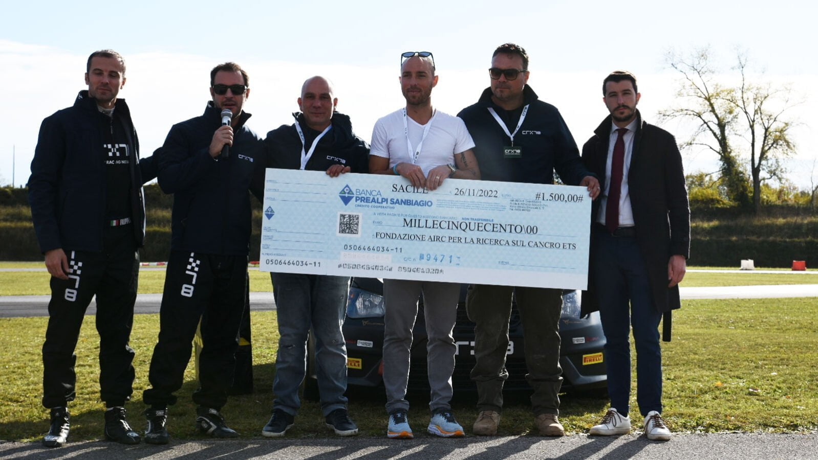 L’evento, organizzato da Crx78, azienda di abbigliamento motorsport di Sacile, ha avuto un occhio di riguardo anche per AIRC. Gli organizzatori Mattia Vairoli e Massimo Piccin hanno consegnato al rappresentante dell’associazione un assegno di 1.500 euro. Denaro che verrà impiegato per la ricerca.