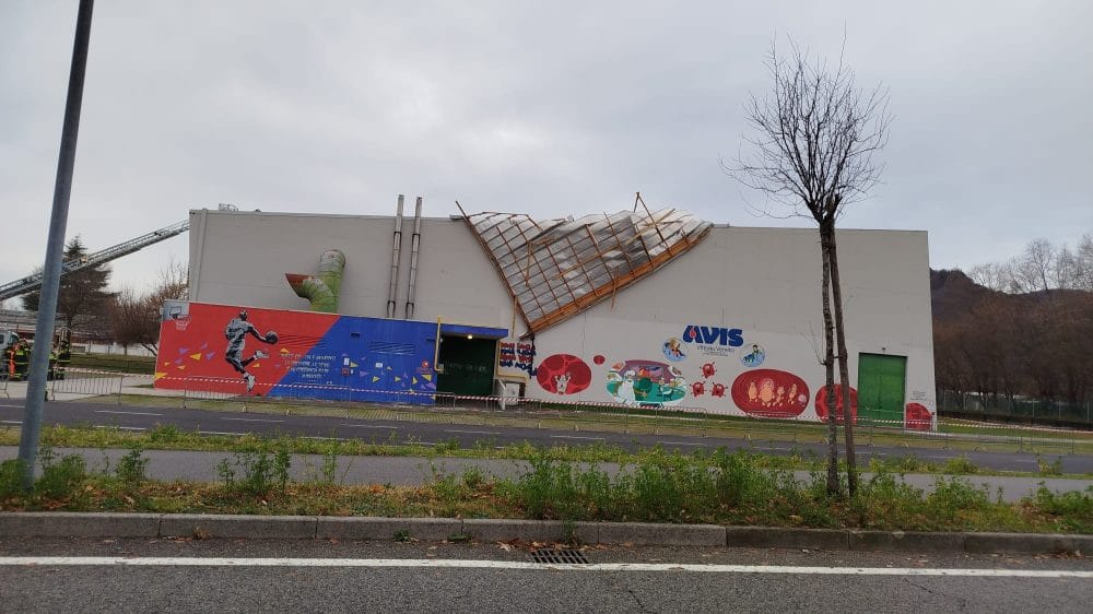 Nel dettaglio, la palestra “Bortoluzzi” ha subìto un distaccamento di parte della copertura posata negli anni ’90 a protezione del tetto: l’aria si è infilata sotto la struttura di alluminio, causando l’innalzamento della stessa, che si è staccata in più punti. Immediato l’intervento dei Vigili del Fuoco di Vittorio Veneto, che sono poi stati raggiunti dall’unità di Treviso munita di scala mobile.