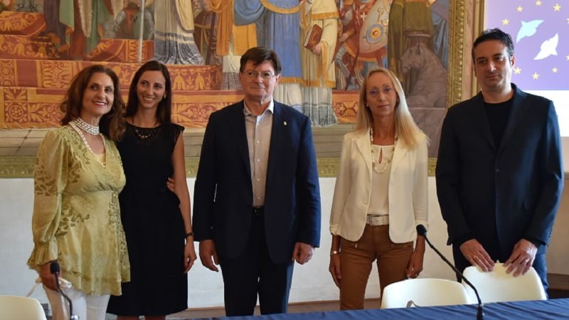 “L’aspirazione a una nuova ripartenza – spiega il sindaco Toni Miatto – è rappresentata idealmente dal nuovo logo che Vittorio Veneto ha deciso di darsi per identificare il Concorso di Violino: due colombe che volano leggere, a richiamare un simbolo di pace. In coppia, il loro volo suggerisce anche il concetto di incontro tra nazioni, culture, idee, sogni. Le loro sagome creano nel cielo azzurro d’Europa la forma intuibile ma non preponderante di un violino, a decretare tutta la forza di un segno grafico nuovo, elegante, ma potente nel suo messaggio di speranza”.