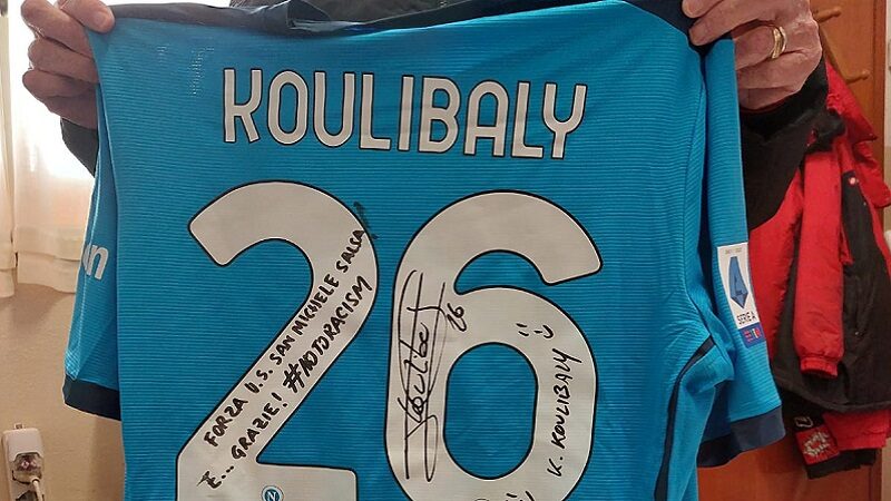 Vittorio Veneto, “Forza San Michele, no to racism”, arriva per solidarietà la maglietta del Napoli autografata da Kalidou Koulibaly