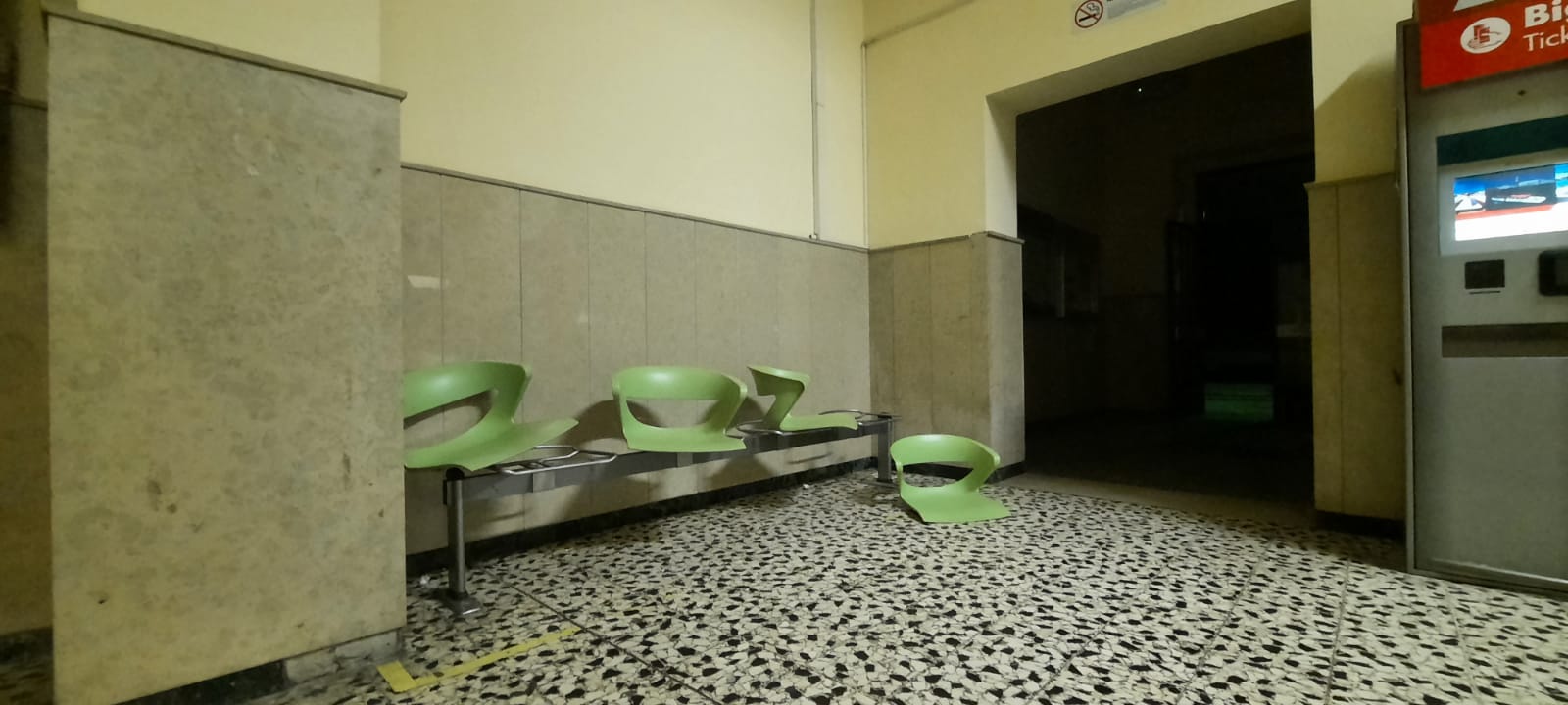 Chi è transitato per l’atrio della stazione principale della città nelle scorse ore si è imbattuto in una scena che sembra ricondurre a un vandalismo vero e proprio, compiuto ai danni delle quattro seggiole in plastica fissate con dei supporti a un sostegno di metallo posizionato lungo la parete sulla quale una volta si affacciava la biglietteria ferroviaria con operatore. “Tutte e quattro le seggiole sono strappate dai rispettivi supporti” testimonia un viaggiatore che da molti anni frequenta la stazione del centro. Nell’atrio (videosorvegliato) c’è un’altra serie di posti a sedere, ma ciò non basta a rendere meno amaro quanto avvenuto in un’area che ormai da mesi genera lamentele per la presenza assai frequente di contenitori di cibo e bevande fuori dagli appositi contenitori.