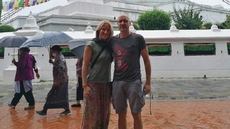 Cercando di organizzarsi al meglio per affrontare le restrizioni legate al Covid-19, e con una buona dose di coraggio, la coppia ha comunque deciso di prendere l’aereo e raggiungere Kathmandu.