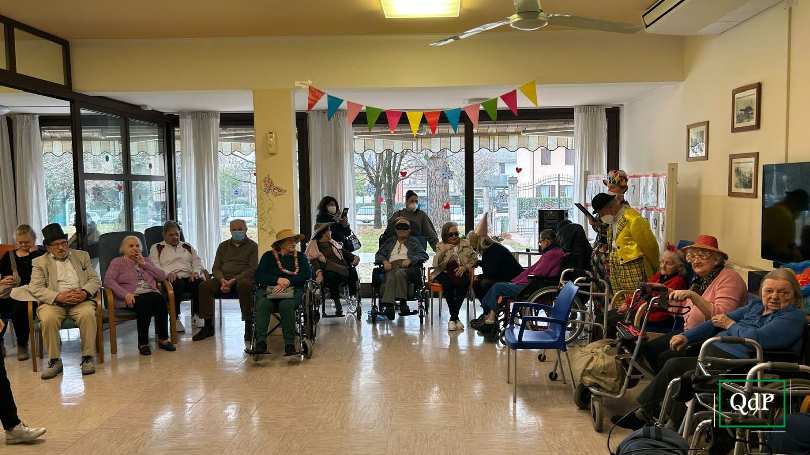 A partire dalle ore 15 di oggi, martedì 21 febbraio 2023, il salone della casa di riposo si è riempito di sorrisi grazie ai nonni in maschera entusiasti di poter festeggiare con i loro cari e con il personale della casa di riposo.