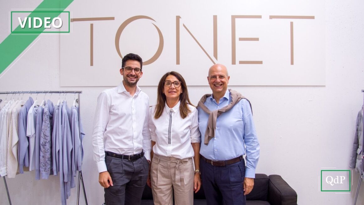 La storia di Carella Srl e del marchio Tonet affonda le radici negli anni Sessanta e coincide con quella di una famiglia. Tutto comincia quando la mamma di Lella, rientrata da un periodo di lavoro in Svizzera, acquista la prima macchina da maglieria. In quel momento il laboratorio è poco più di un progetto domestico; quando però le figlie entrano in attività, l’impresa cresce e può definirsi a tutti gli effetti un’azienda. Per un periodo Carella lavora come terzista per marchi internazionali, realizzando capi per conto terzi; poi arriva la svolta, con la decisione di firmare collezioni proprie. Secondo il racconto di Stefano, l’ingresso del padre Claudio Teso segna il passaggio a una nuova stagione: è in questi anni che il marchio Tonet si diffonde velocemente all’estero, trovando spazio in mercati sempre più lontani.
