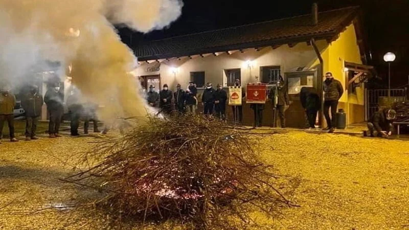 L’occasione è utile anche per ricordare il significato più profondo del Panevin. Un tempo, bambini e adulti preparavano grandi cataste di rovi, canne di granoturco, sterpaglie, tralci di vite, ginepro, stoppie, frasche e fascine, recuperando fogliame e trucioli inutilizzati nelle campagne. Il falò veniva acceso verso sera, allo scoccare dei rintocchi dell’Ave Maria, alla presenza di tutta la gente della contrada o della borgata. Non era soltanto una festa, ma un rito dal forte contenuto sacrale e simbolico, che serviva a salutare l’anno appena trascorso e a invocare fortuna per quello nuovo.